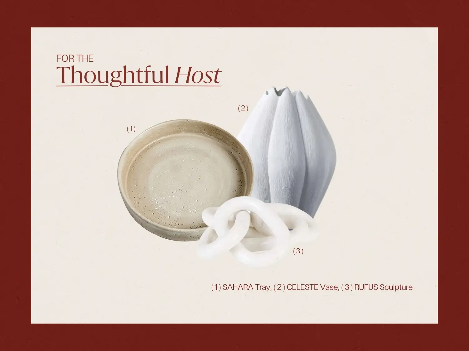 They’re drawn to pieces that elevate everyday rituals. Think sculptural accents like the RUFUS Sculpture, a SAHARA Tray that moves seamlessly from styling to serving, or a CELESTE Vase that adds quiet impact to any setting. Add soft lighting and thoughtful serveware, and you have gifts that help them host beautifully, without the fuss.