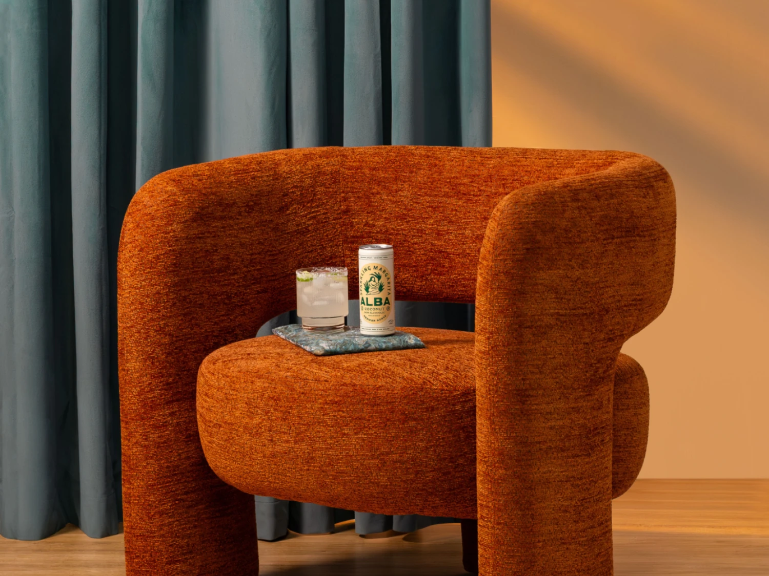 Smooth, creamy, and quietly radiant, the Coconut Margarita reminds us of that golden moment before sunset, calm, warm, and full of glow. We paired it with the GLOBO Accent Chair (coming soon), its sculptural curves and rich terracotta hue echoing the tones of dusk.