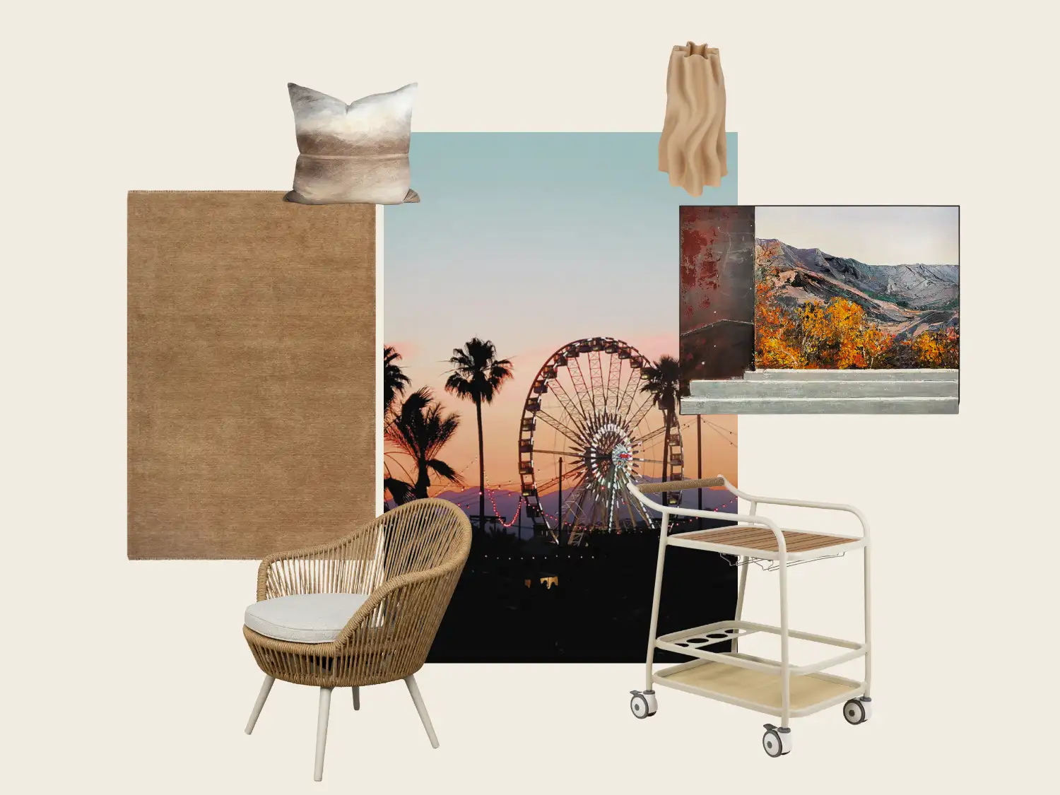 As summer draws to a close, we’ve been reflecting on the moments that defined it. Our four moodboards capture the art of escape, inspired by some of our favourite holiday destinations. From the easy calm of the beach to the quiet stillness of the mountains, the creative energy of the city and the golden warmth of festival season, each look distils the feeling of travel through texture, tone and form.