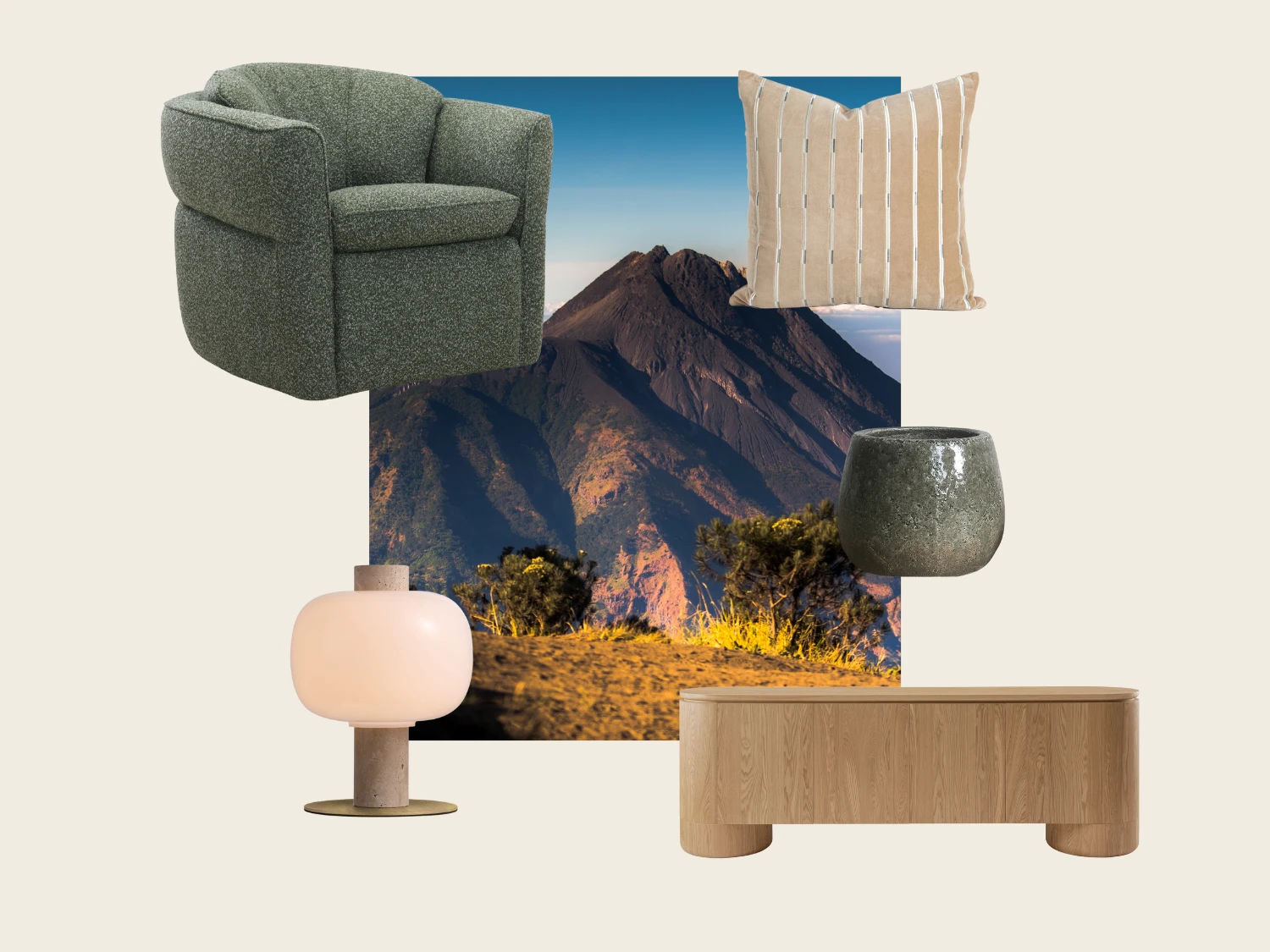 For those who seeki cooler days and fresh mountain air, this look captures the calm of a green alpine escape. Think quiet villages, winding roads, and interiors shaped by nature, simplicity, and slower living