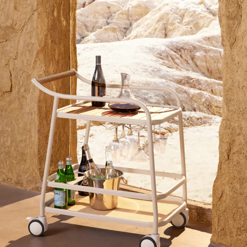 The PODO Outdoor Table exudes natural elegance, while the RIALTO Dining Chairs in soft sand provide both comfort and understated style. To complete the look, our MENDOZA Drinks Trolley in sand adds a touch of practicality with its versatile design. Together, these pieces create a harmonious outdoor space that feels light, airy, and effortlessly inviting, perfect for those who appreciate a fresh, serene atmosphere.