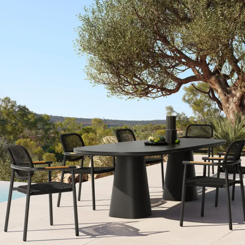 The right dining setting makes long lunches easy. Comfortable, sculptural chairs invite people to sit and stay, while a generous table holds shared platters, cold drinks and the casual conversations that make summer afternoons feel good. As the day goes on, the space naturally opens up to the backyard, which acts like an extra room where everyone drifts in and out. With furniture designed for open skies and relaxed living, your home becomes the spot where friends and family keep coming back, even as the light starts to fade.