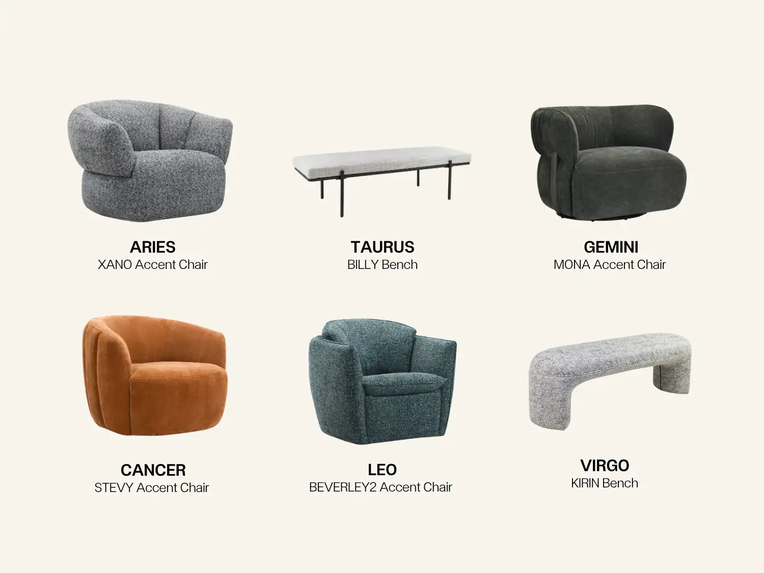 Understated, solid, and quietly luxurious, BILLY is everything Taurus craves. Its textured seat and grounded form invite slow living and everyday rituals.
