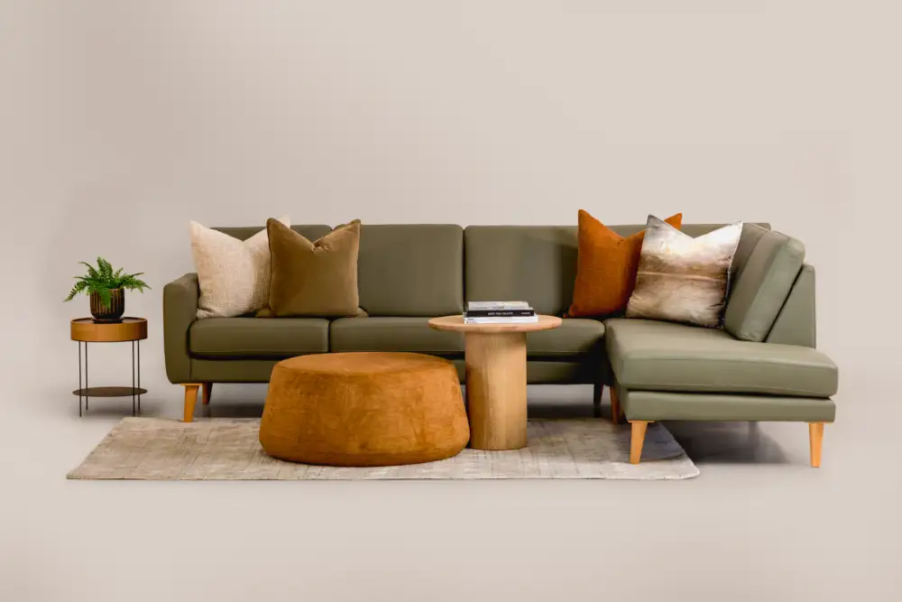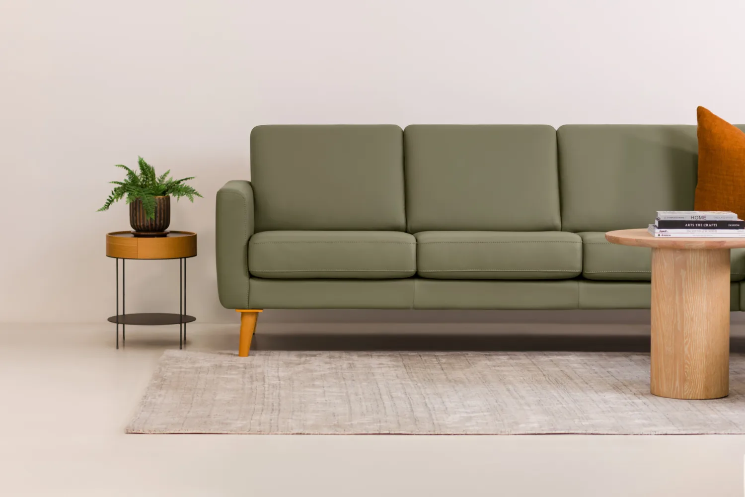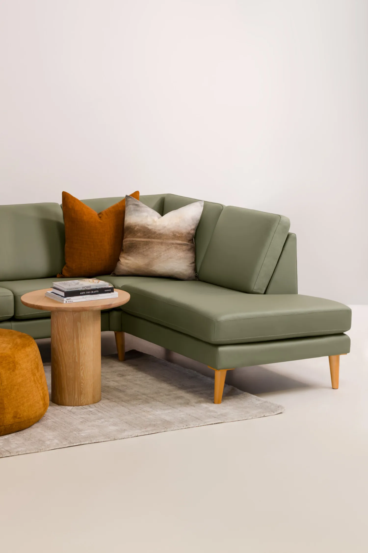 NORBO 3 Seater-Left-Facing + Corner + Right-Chair-Meridian in CatP329 Olive Leather with Oak Leg
