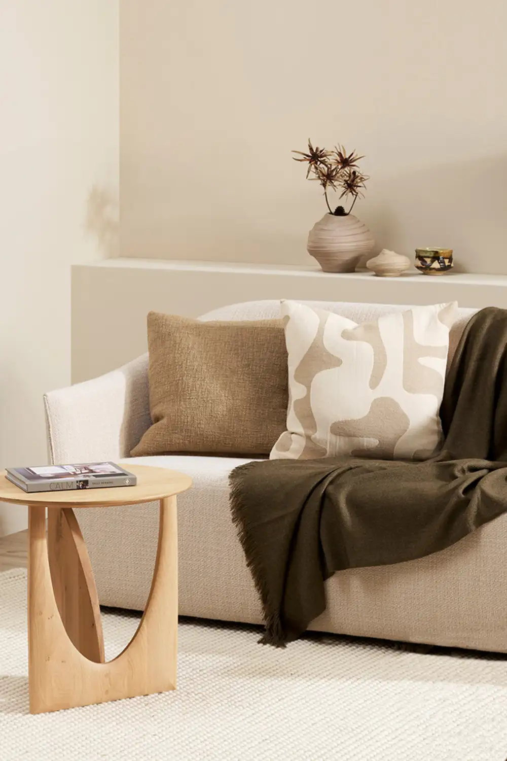The Bennett cushion effortlessly harmonises these timeless tones, offering a sense of tranquillity and balance to any space. Its jacquard woven design, adorned with an ensemble of abstract shapes, adds a touch of whimsy to its sophisticated aesthetic.