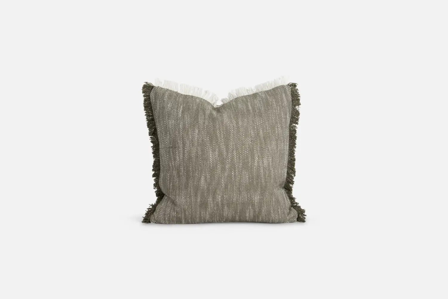 Featuring earthy mangrove and ivory tones, CASPIAN's simple weave and two-tone fringing provides a simple, textural aesthetic for contemporary living spaces. Handwoven from soft PET yarn, this versatile piece works just as well styled indoors, especially in areas exposed to sunlight.