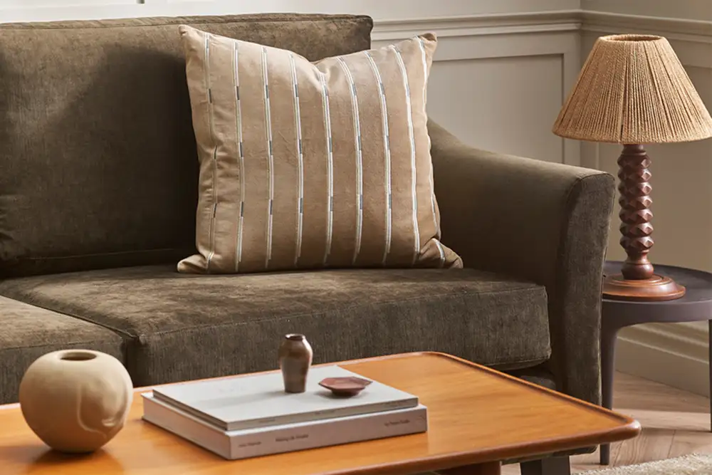 Bring depth and texture to your space with EDEN. Soft cotton velvet contrasts with sleek embroidered stripes, creating a tactile mix that’s easy to layer. A simple way to add a touch of everyday luxury to your space.