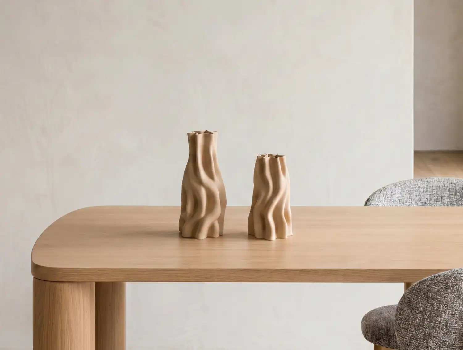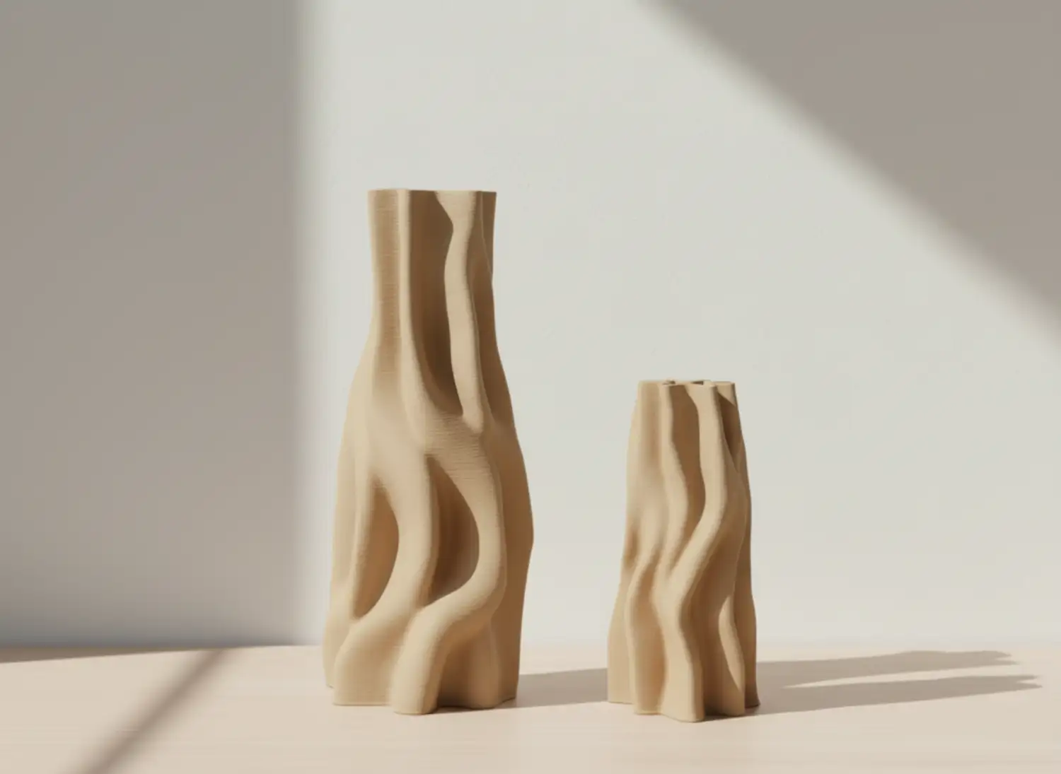 ANOUK showcases a modern sculptural shape with soft curves and a smooth matte finish. Its 3D-printed ceramic design offers a contemporary touch, while the warm beige tone pairs effortlessly with various interiors. Perfect as a statement piece or styled with faux stems.