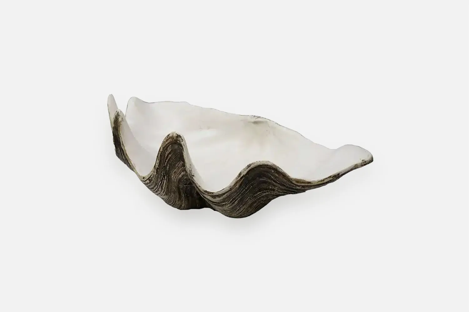Bring a subtle coastal note into your space with this sculptural clam shell crafted from durable polyresin. Designed to be both decorative and functional, it works beautifully as a standalone object or styled among vases, books and other collected pieces. Use it to hold small essentials or simply let the form speak for itself.