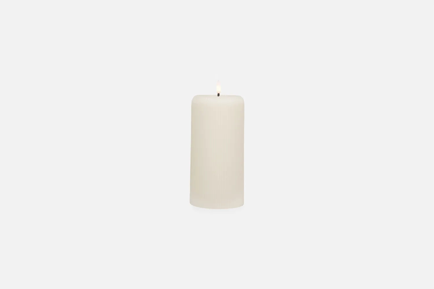 HALO gives you the beauty of candlelight without the worry. Made from real wax with elegant ribbing, its soft cream finish and lifelike LED flame create a warm ambience with no smoke and no mess. Available in three sizes, perfect solo or as a trio.