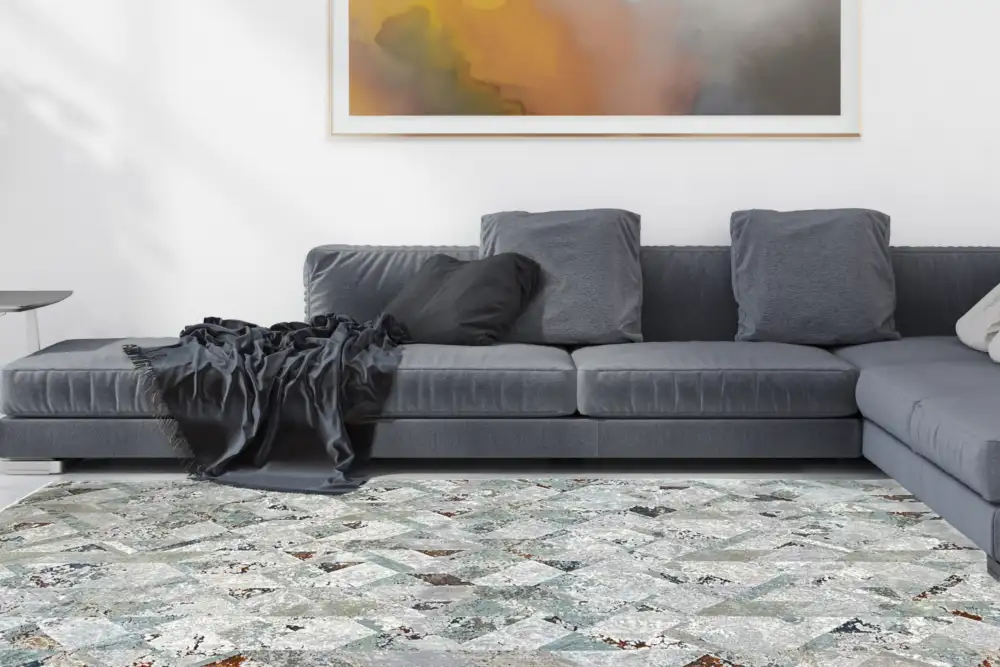 Seamlessly blending contemporary style with luxurious comfort, this rug is available in two sizes to suit your space. Constructed from durable polyester, its multidimensional soft pile offers a plush feel while adding depth and texture to your room. Adorned with subtle strokes of colour and a striking pop of copper in a sophisticated geometric pattern, the Dimension Rug brings modern elegance and timeless charm to any room.