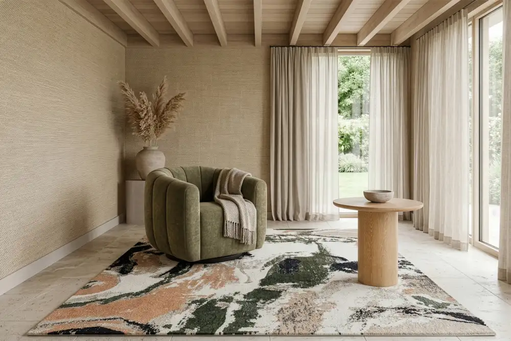 An expressive design with a painterly feel, FRESQUE brings a sense of movement and creativity into the room. Inspired by the spontaneity of a children’s art workshop, its bright yet natural tones and visible brushstrokes create a layered, almost fresco-like effect that feels both playful and considered, with its craftsmanship rooted in Belgium.