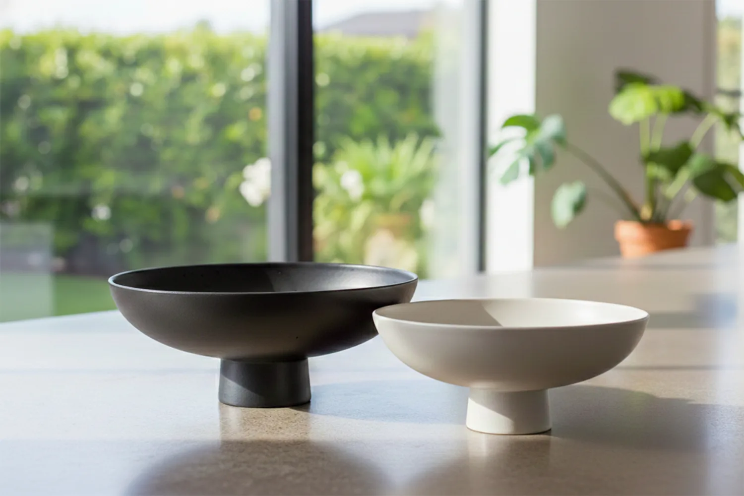 LETTI 36 Bowl w/Pedestal Matte Black Clay