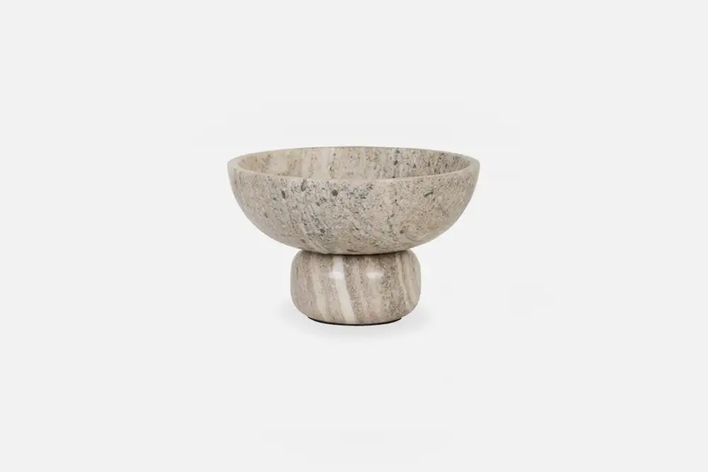 The INDRA Goblet Bowl showcases its marble design through simple yet striking details. Resting on a rounded base, this bowl makes a statement on its own or can be paired with similar pieces for a refined, cohesive display.