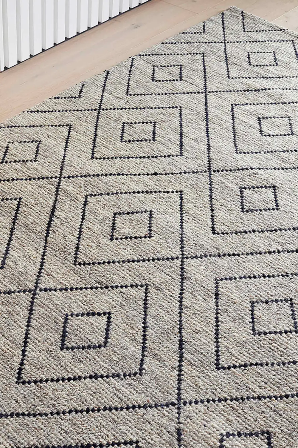 Makalu is a contemporary take on the timeless Berber rug motif. Embracing the iconic diamond within a diamond pattern, the rug captivates with its clean lines and impeccable finish.