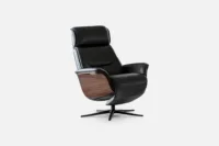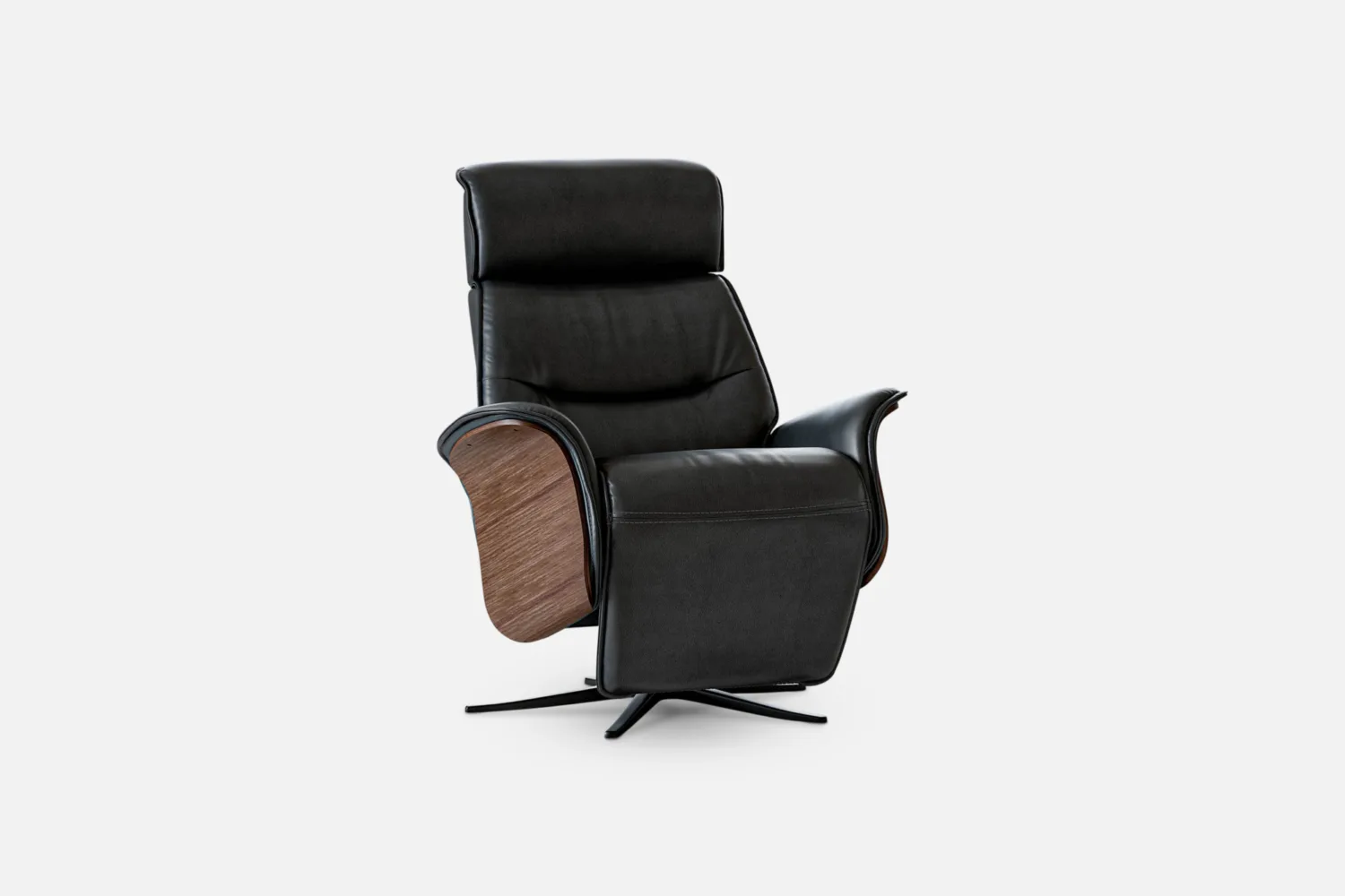 SPACE-5300 Recliner in CatT-401 Tuxedo Leather with Walnut Arm, Low Spindle & Black Base