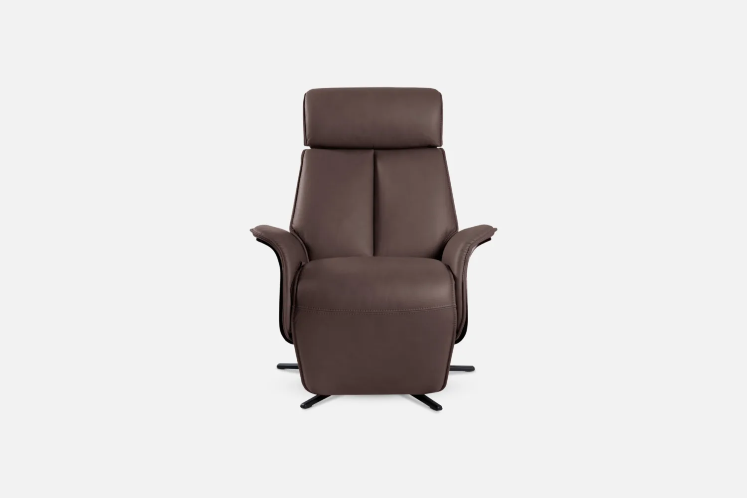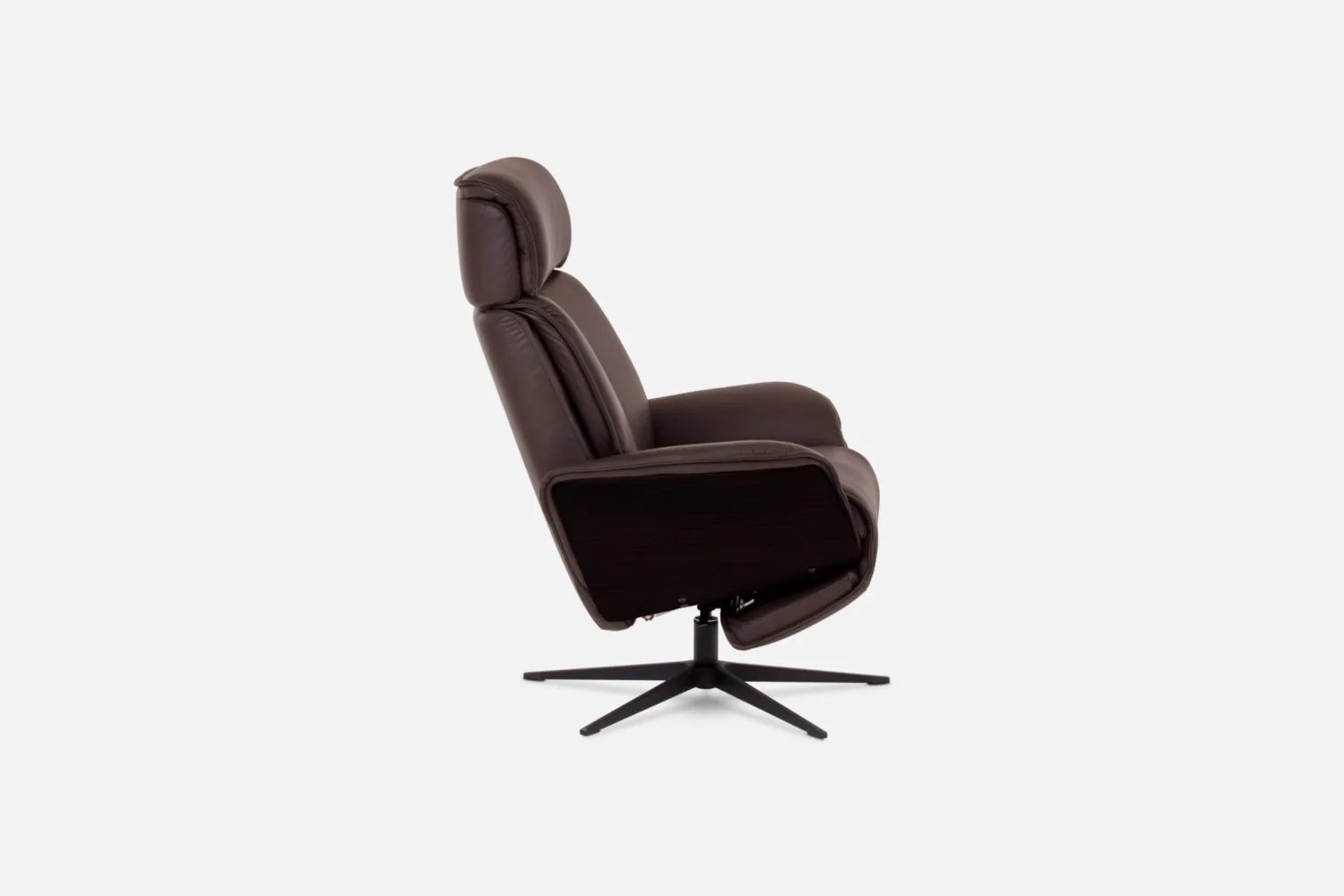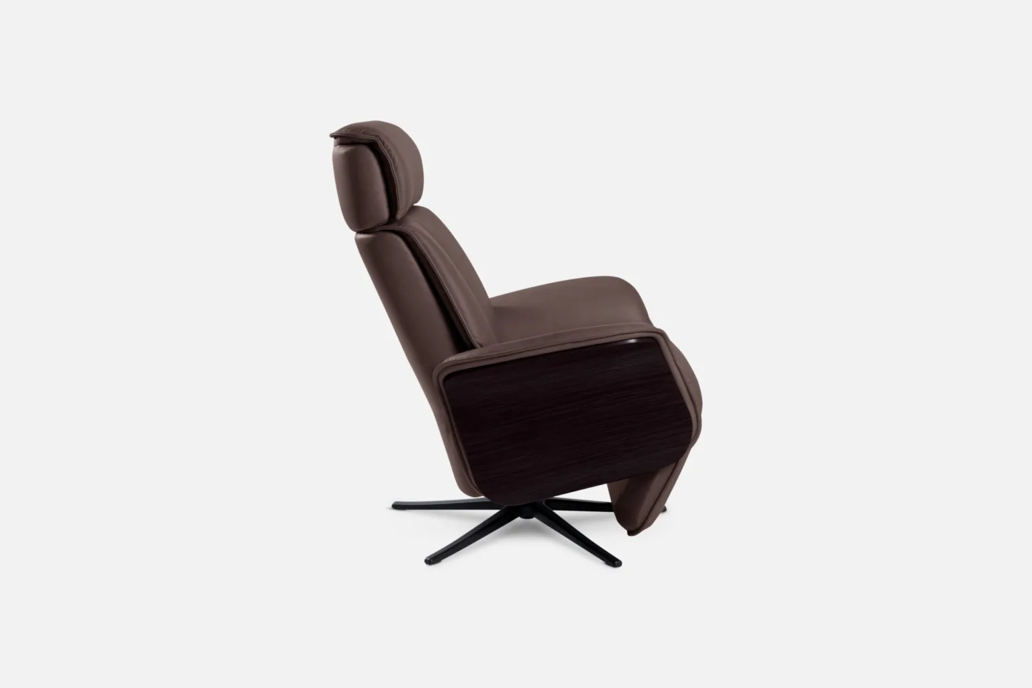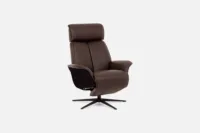 SPACE-5400 Recliner in CatT-436 Mocca Leather with Espresso Wood Arm, Low Spindle & Black Base
