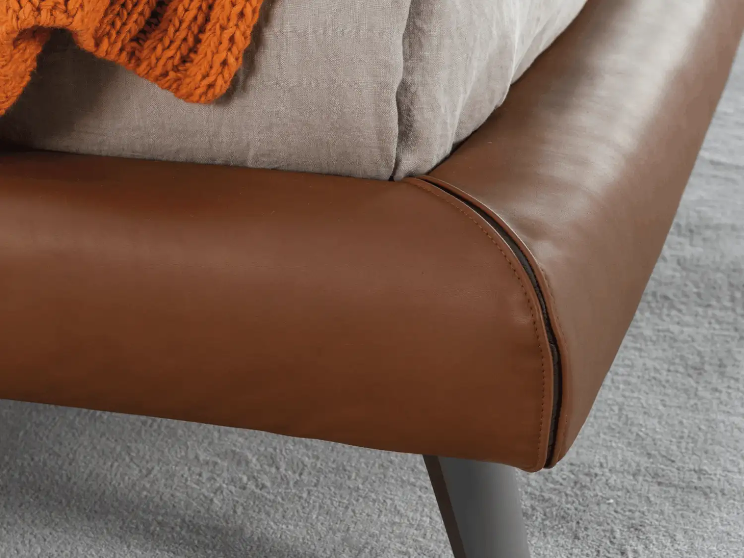 CUFF Super King Bed w/Flexi Slats in CatPonza-A05 Brown w/ CatCapri-L04 Grigio Lthr & Anthracite Foo