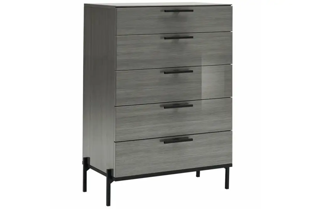 NOVECENTO Tallboy 5-Drawer Silverwood Gloss