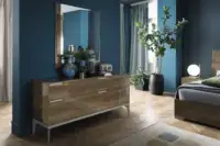 The Serena Bedroom Range by Alf Italia features vanilla elm, accented with painted metal feet and finished in a high gloss shine - this is a blend of contemporary and mid-century design.
