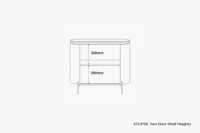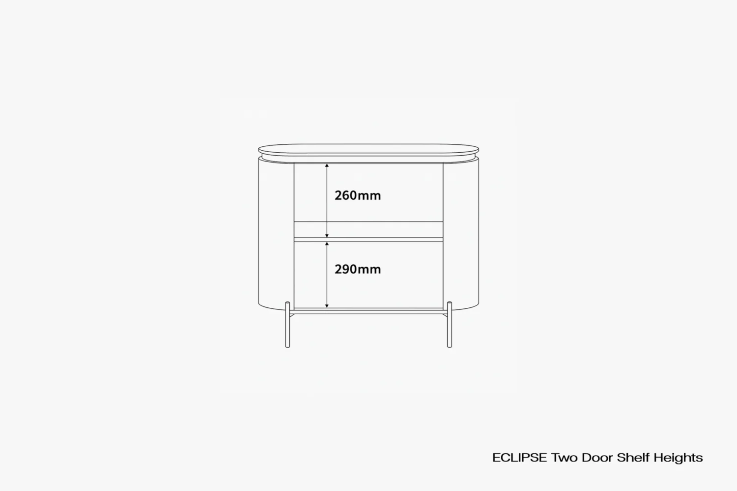 A touch of glamour and nostalgia comes through in ECLIPSE. Heat Treated Oak highlights the natural wood grain, accented by rose gold elements for a refined contrast. Two or three concealed dark oak doors blend seamlessly, while the softly rounded ends catch the light, adding depth to its sleek silhouette.