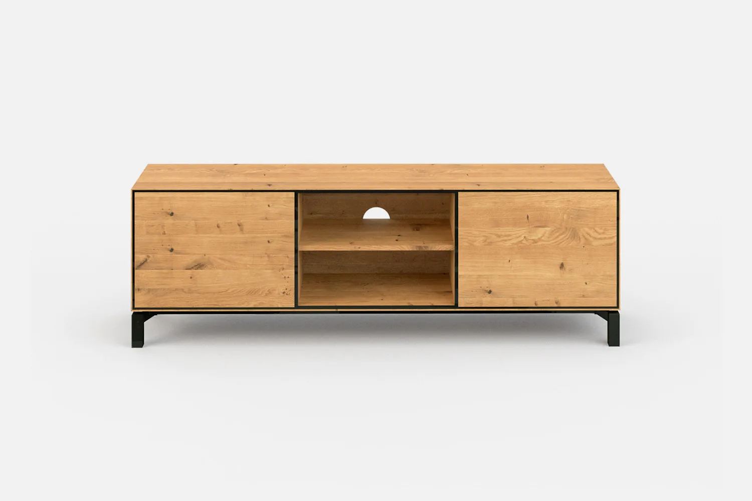HYDE Entertainment Unit 2-Door in Solid Natural Oak with Black Legs