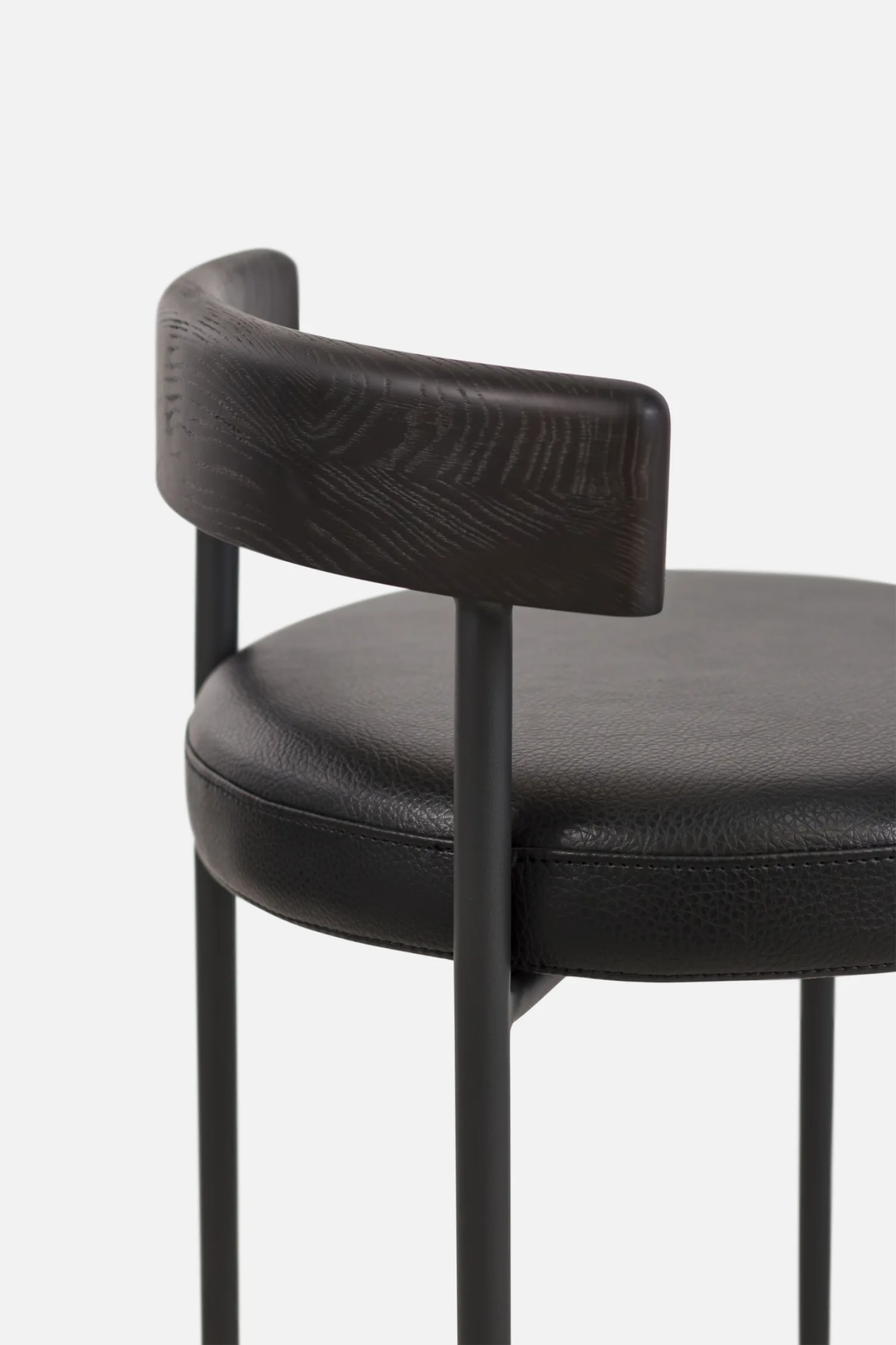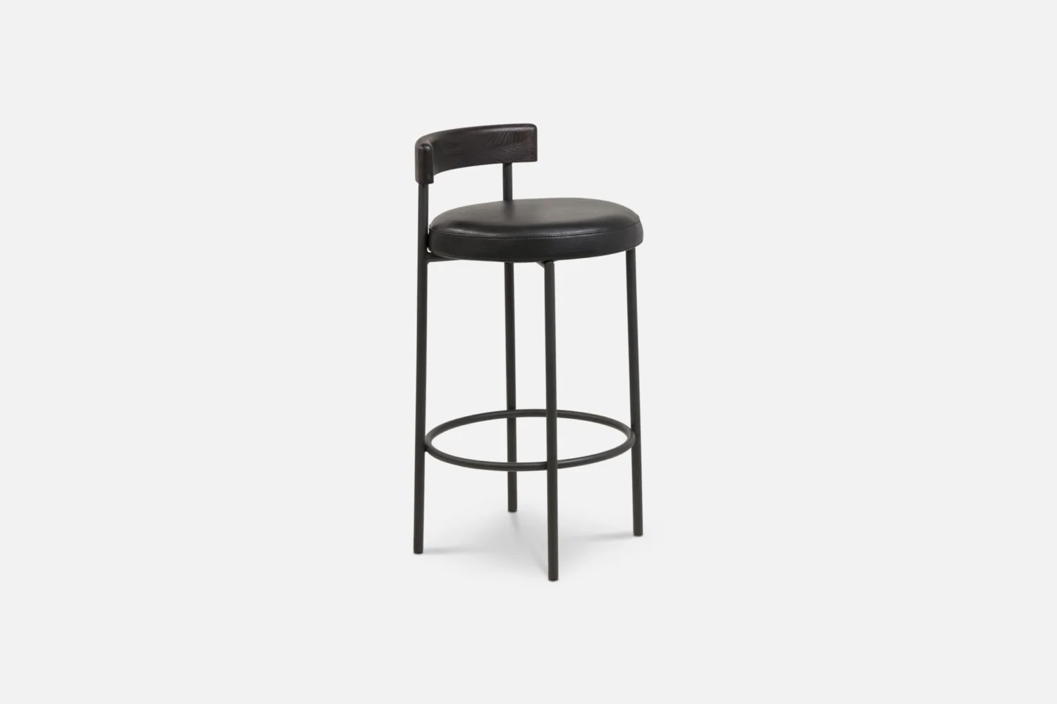 LOOP Barstool in Black PU with Smoked Oak Backrest & Black Legs