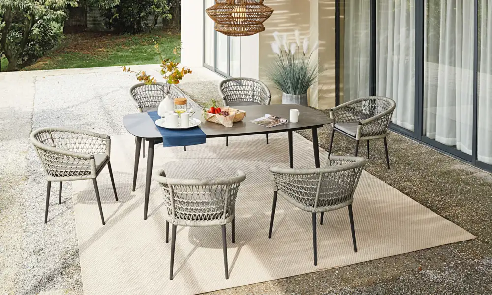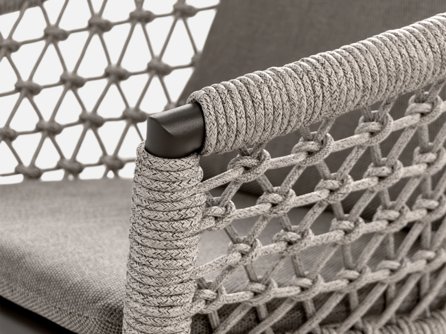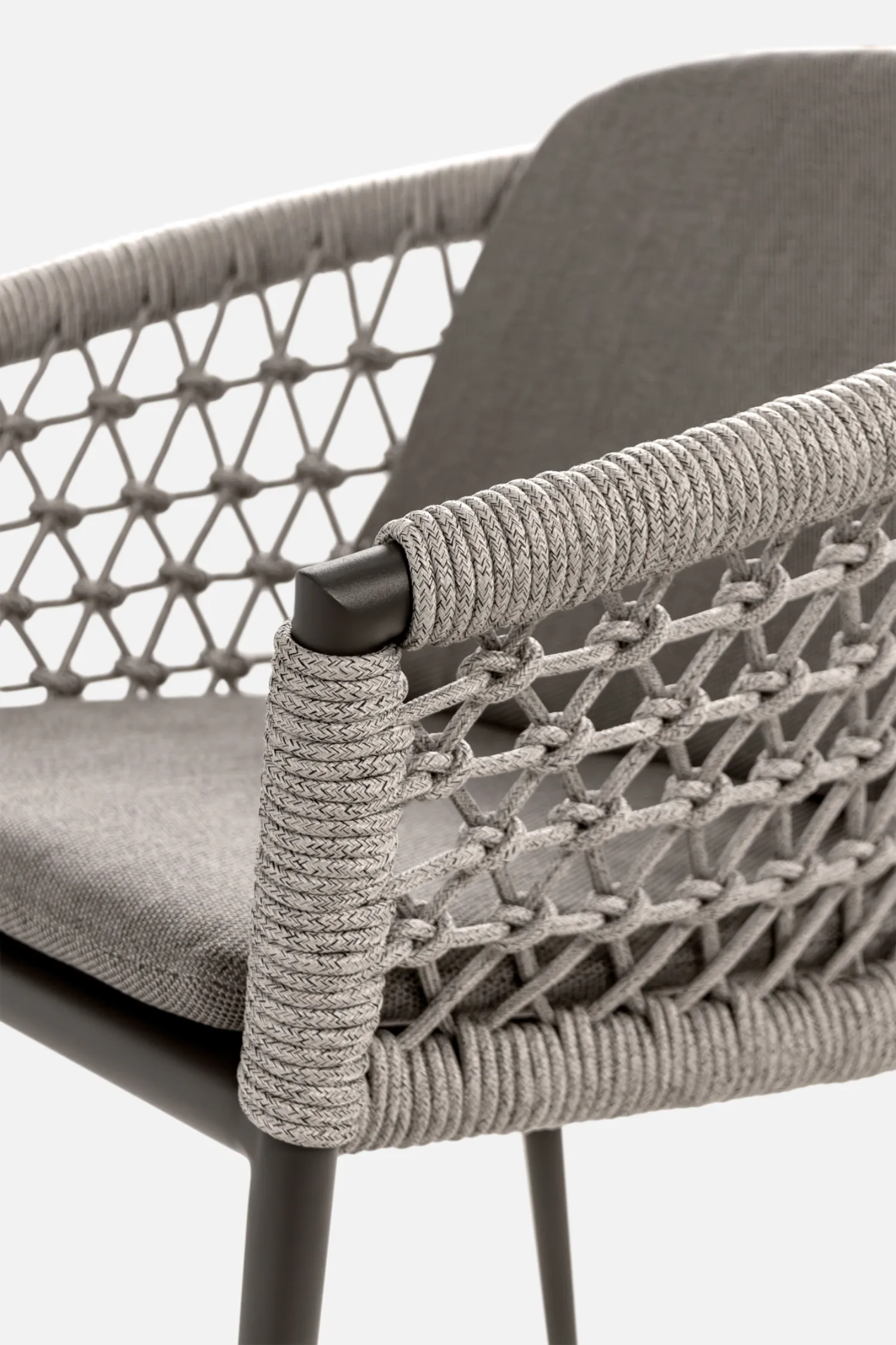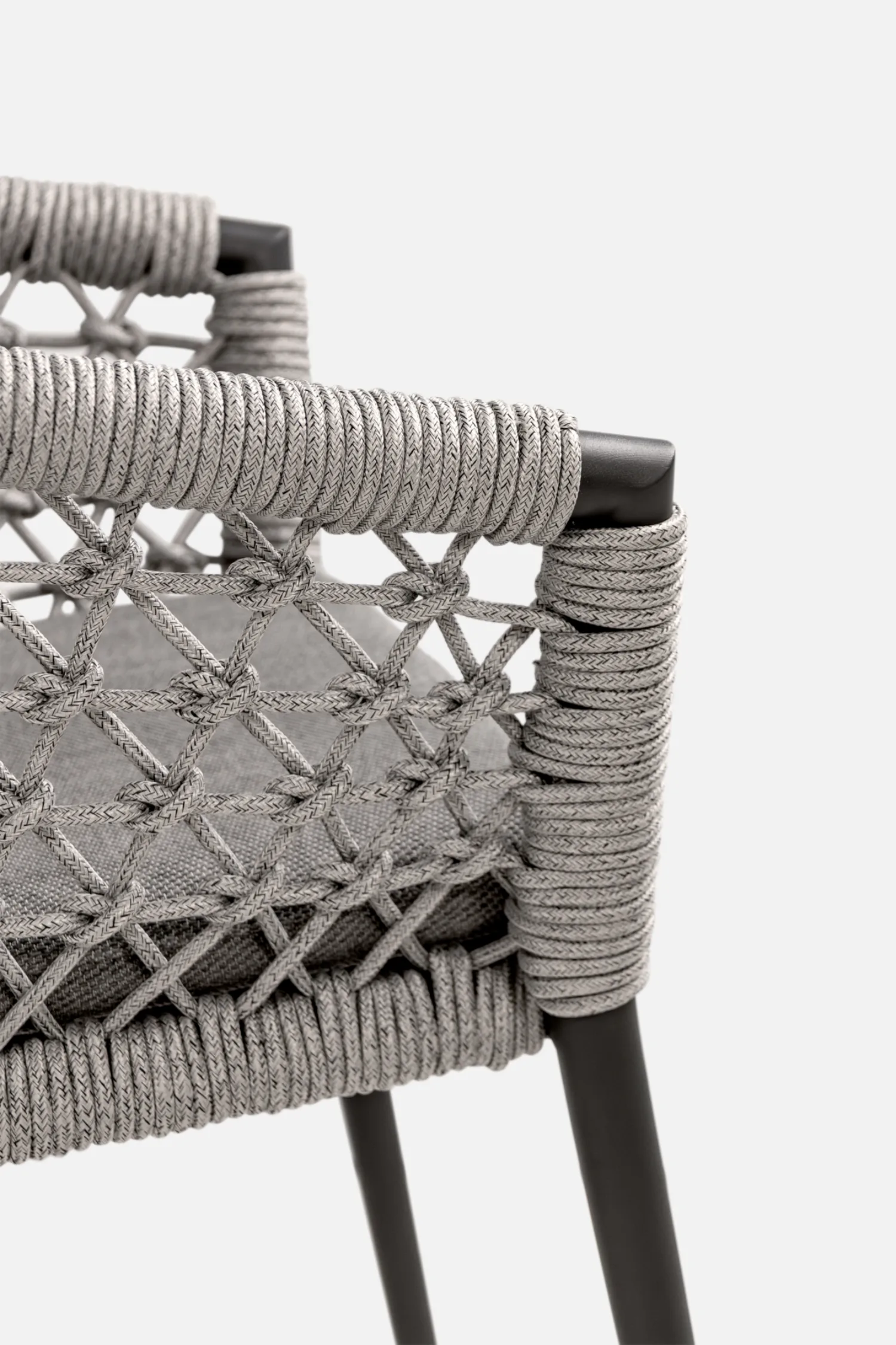 Soft yet hard-wearing rope woven over arms for a comfortable dining experience.
