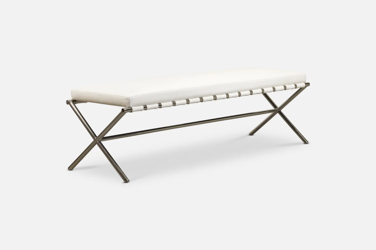 Enhance your hallway, lounge or bedroom with the PANCA Bench – a sleek addition boasting a cushioned seat elegantly poised on a crossed stainless steel frame.