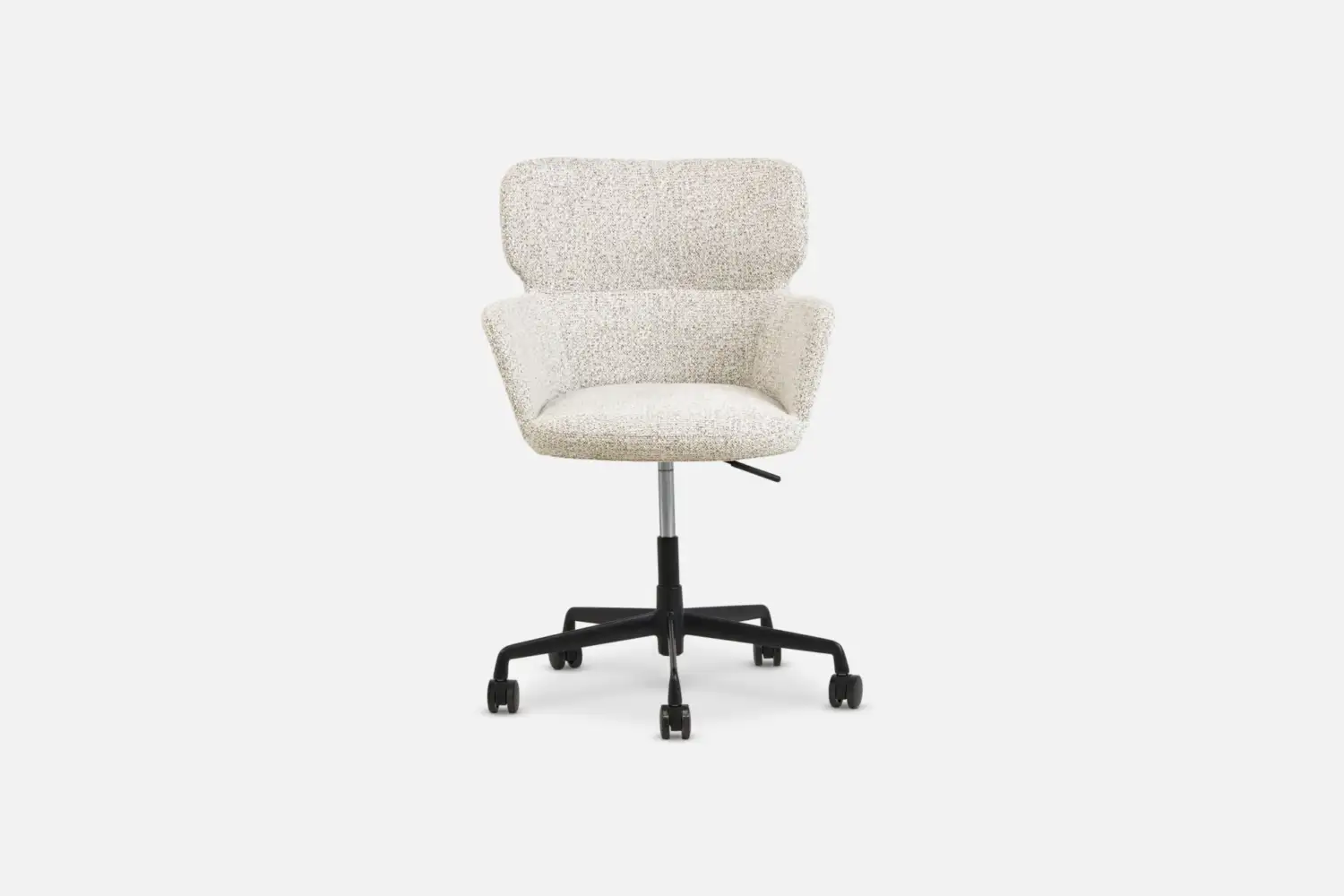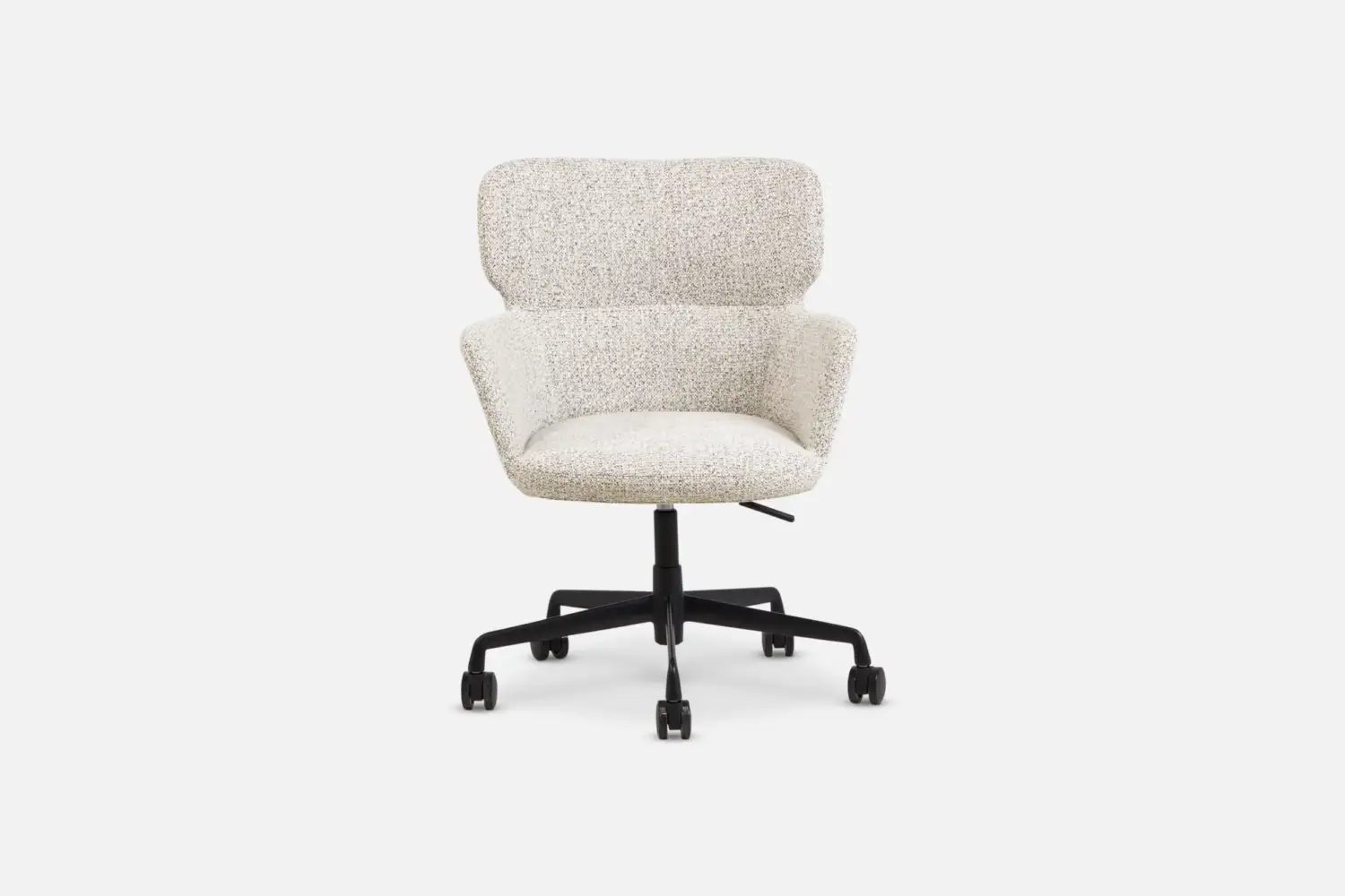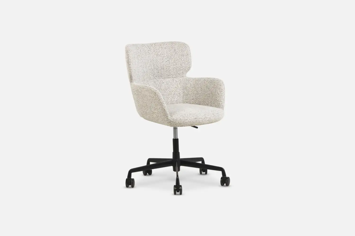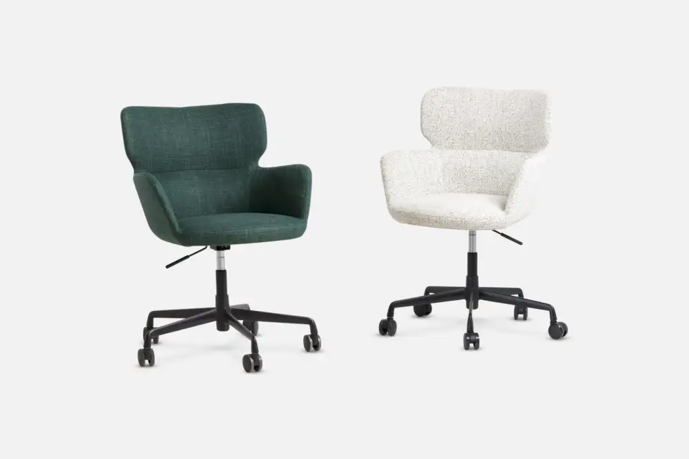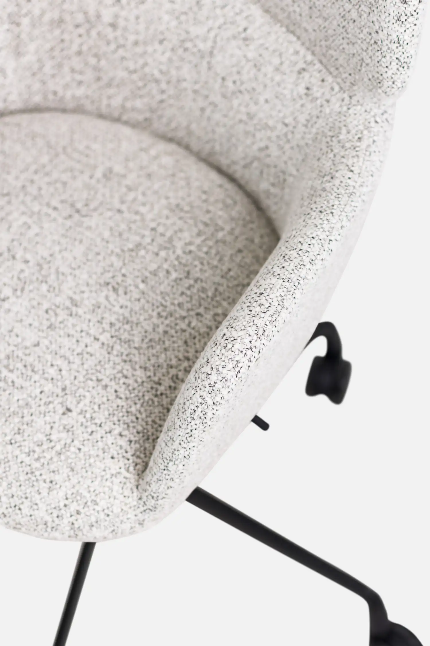 A modern and quietly confident chair, with a low back, keeps it visually light, ideal for smaller spaces. The metal frame and injection moulded foam deliver lasting support, smooth castors and durable textured upholstery make JIM a dependable choice for home or commercial use