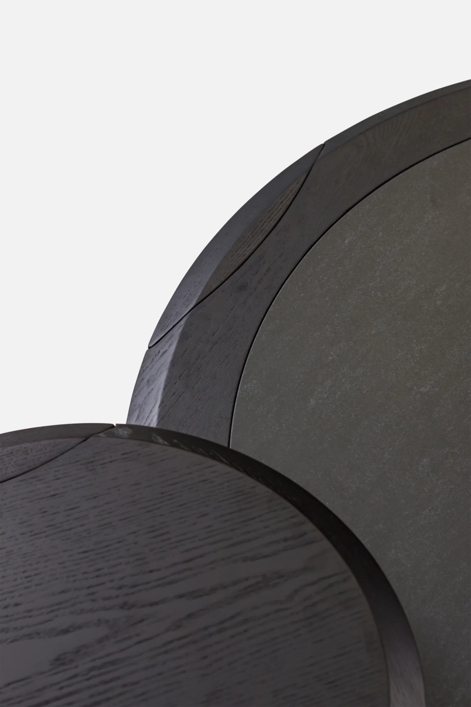 Bold and architectural, GIOVE commands attention with its sculptural base and low, grounded form. The rich smoked ash frame encircles a charcoal ceramic top, creating a refined contrast of texture and tone. Complete the look with the matching GIOVE side table.