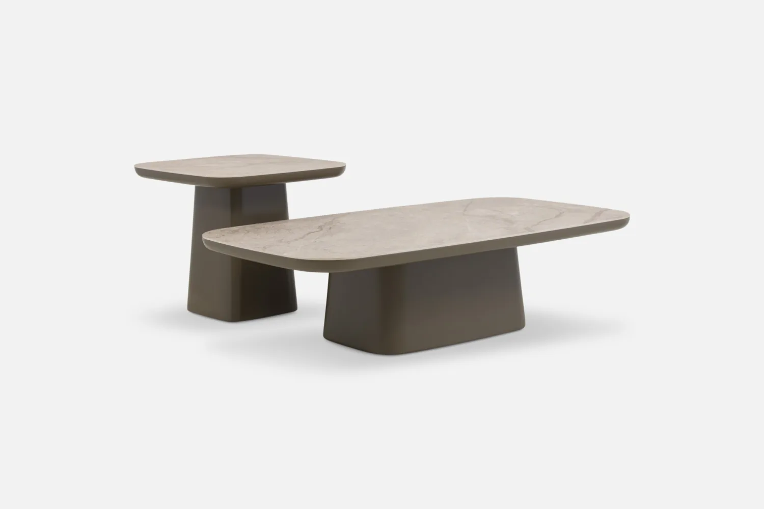 ONGOLA Side Table 60 Square in Biscuit Ceramic with Bronze Base