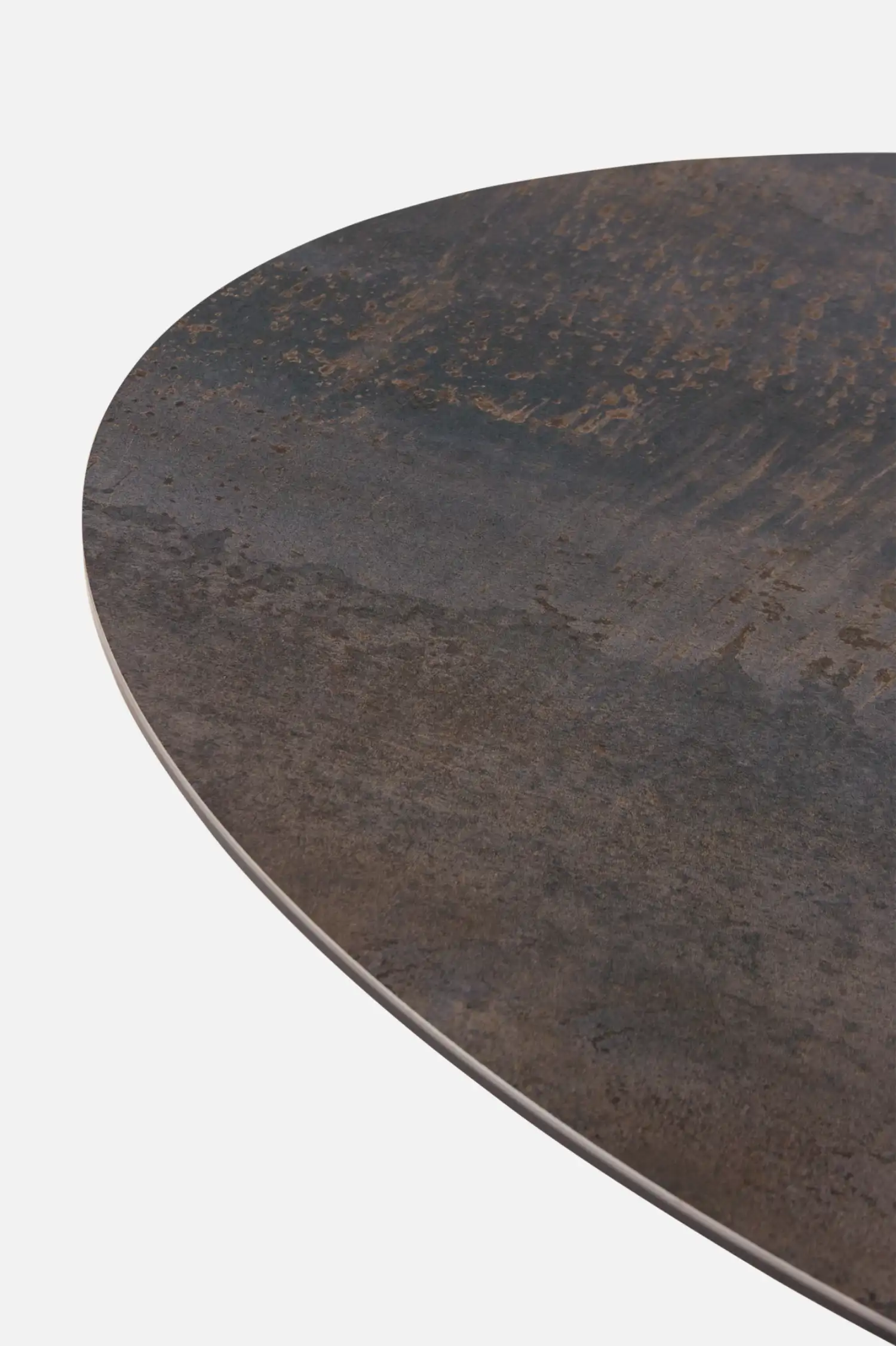 Named after the sun, SOLEIL brings warmth and quiet drama through its sculptural form and refined use of materials. A richly textured ceramic top introduces depth and durability, appearing to float above a bold, architectural base that gives the piece its sculptural presence.