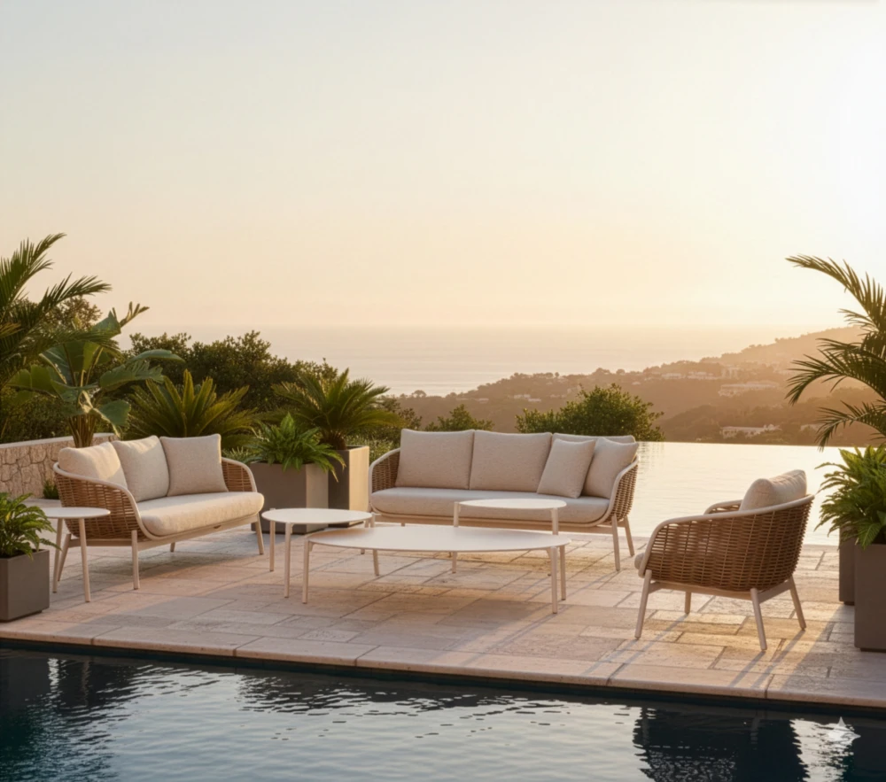 Powder Coated Aluminium: Powder coated aluminium is widely used for the frames and structure of our outdoor furniture. It is both lightweight and resistant to corrosion. Aluminium can oxidize over time if exposed to harsh elements but regular cleaning and avoiding surface damage will ensure the powder coat provides a layer of protection.