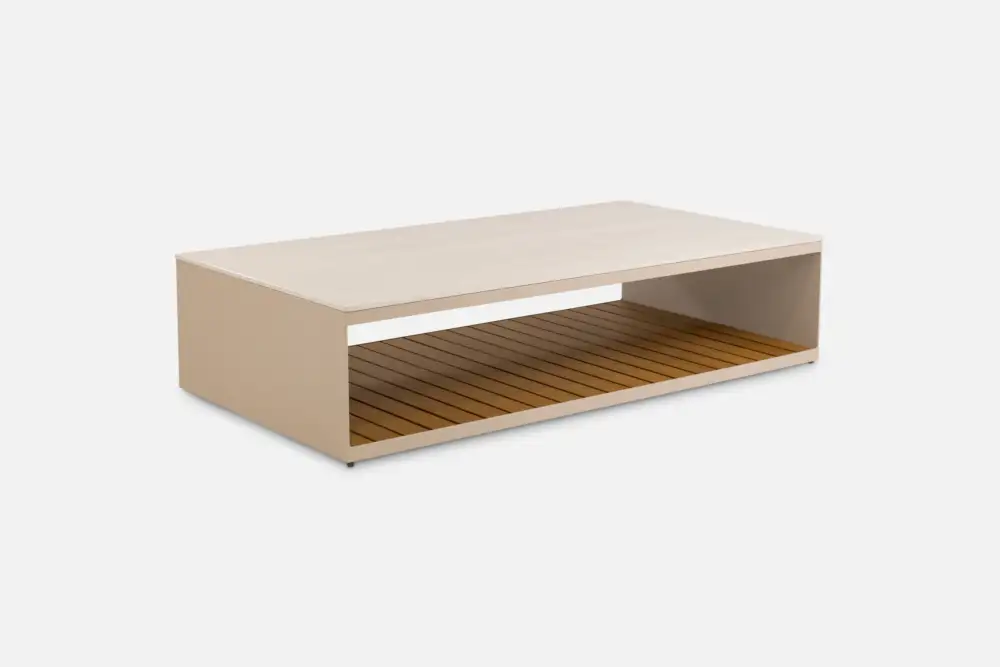 MILA Coffee Table Travertine Ceramic Top/ Sand Aluminium/ Eco-Teak Slats
