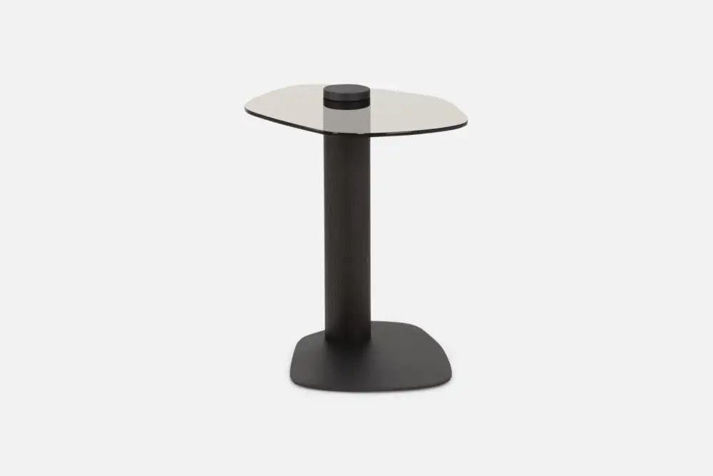 CELTIC Side Table Tinted Glass/ Smoked Oak Stem/ Black Base