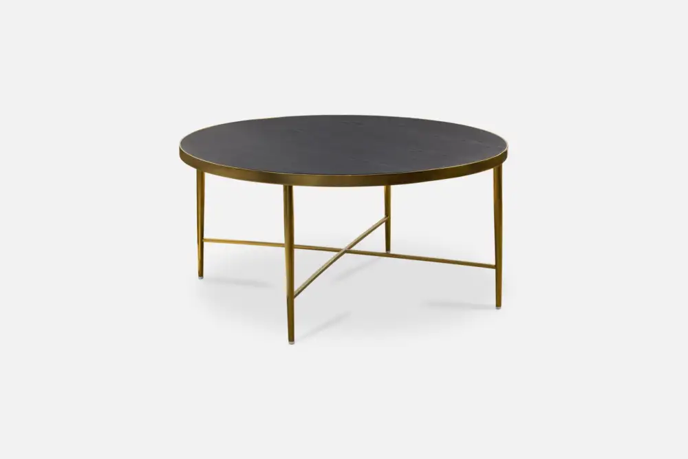 NAPIER Round Coffee Table Black Oak/ Brass Metal Base