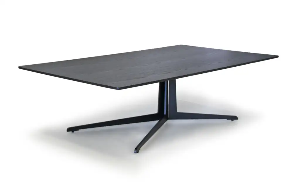 The Braccio coffee table has a black oak top with black stainless steel cross base. Pair with the side table as a nest, or on its own; this piece is sophisticated and contemporary.