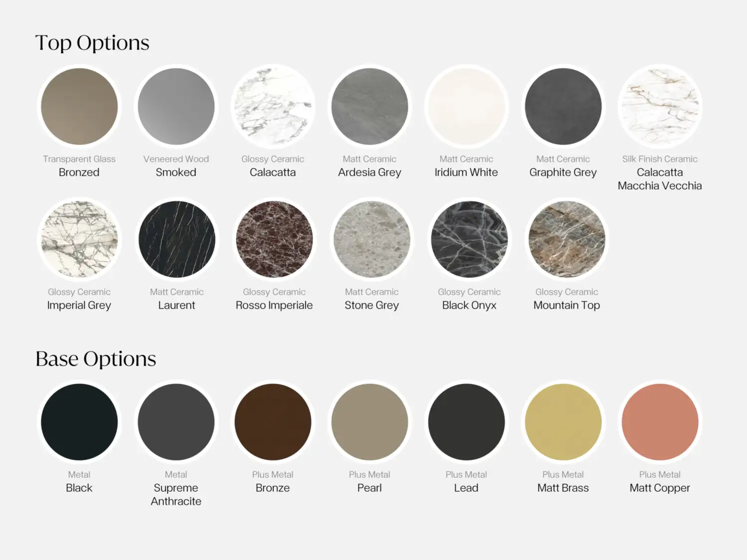Available in a variety of tops and metal bases to create the perfect coffee table for you.