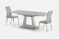 PERSEY 180-220 Rectangle Extension Dining Table with Grey Top & Grey Base with 6 Compe Dining Chairs