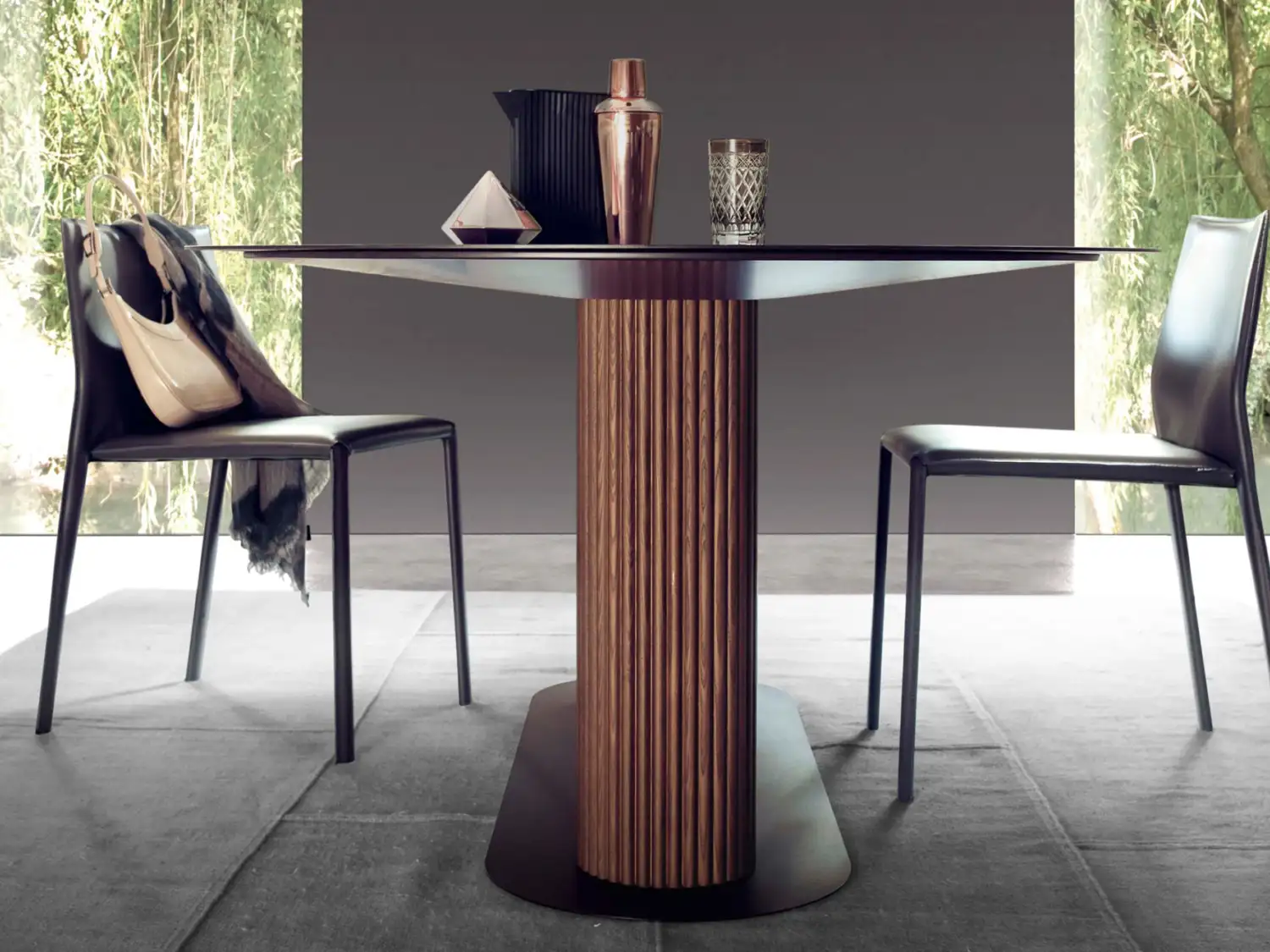 Bring warmth to your dining room with the richly coloured walnut wood base.