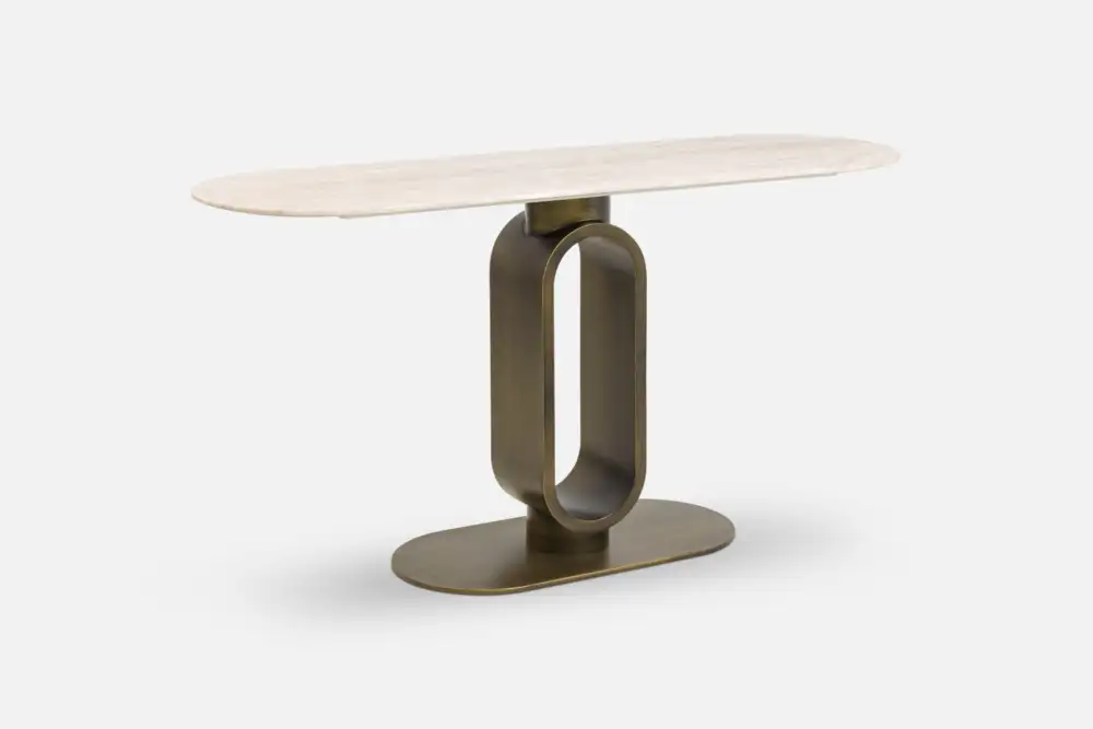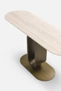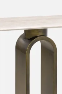FORCHETTA Console Table with Travertine Top & Bronze Base