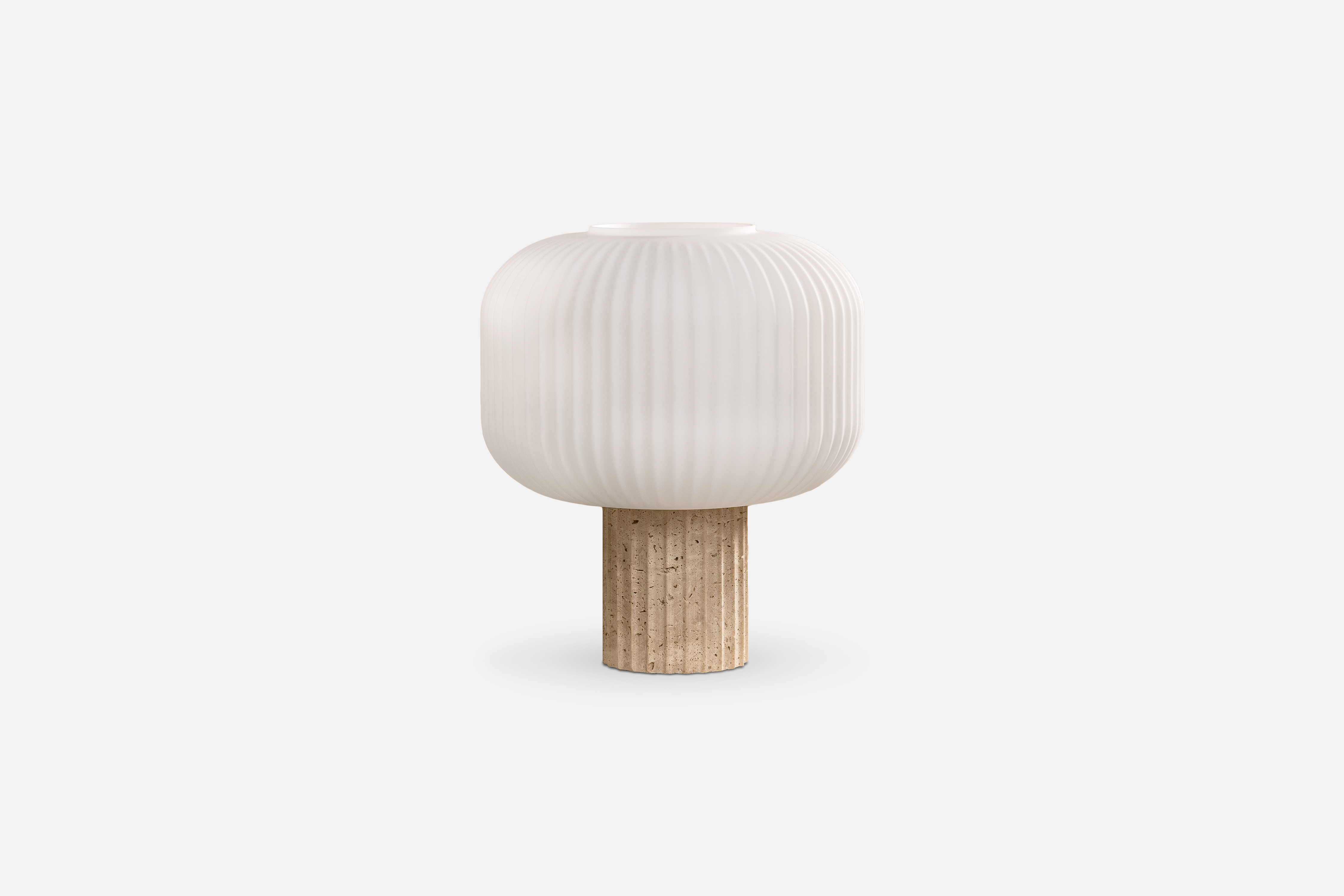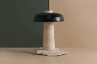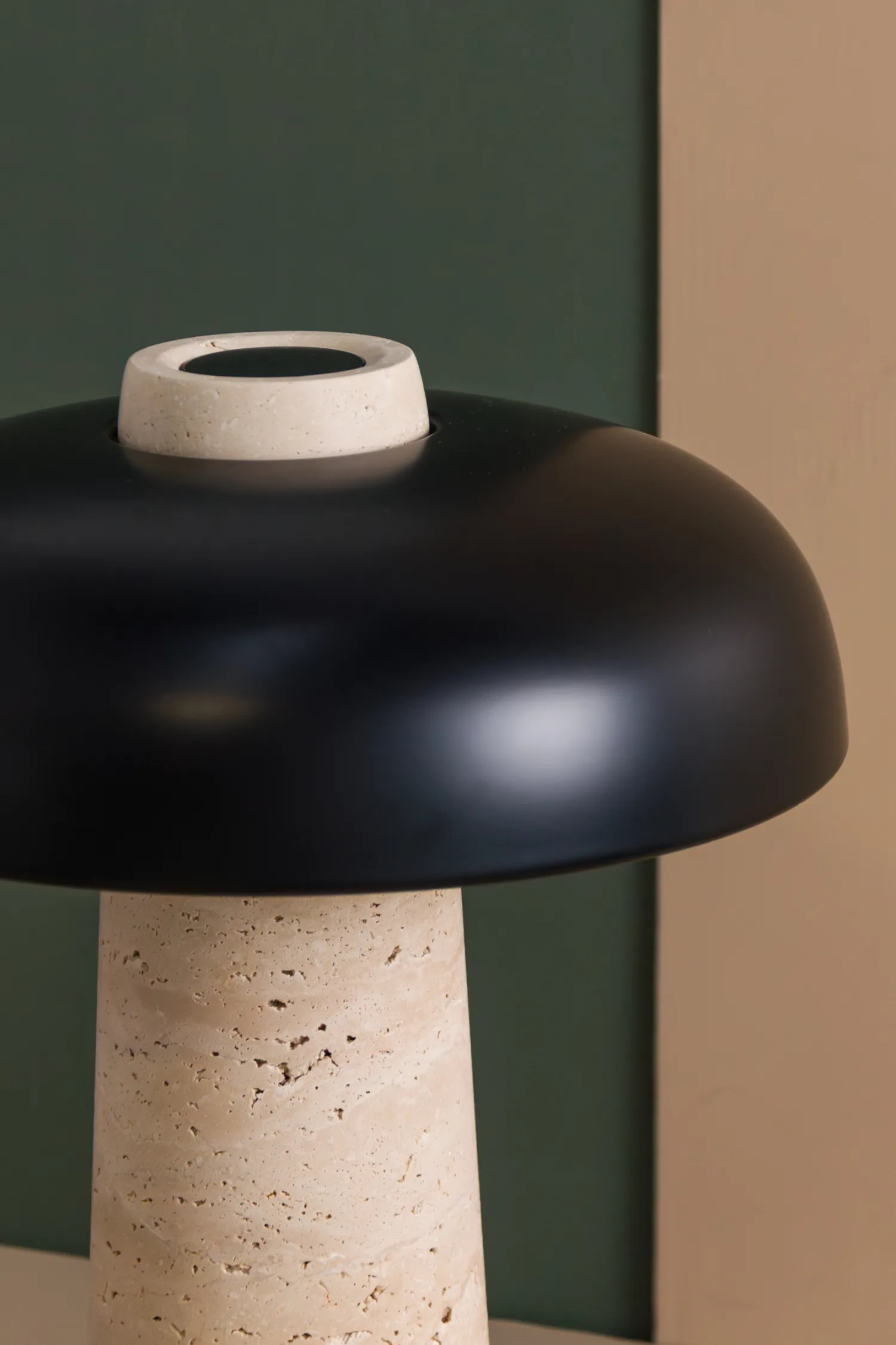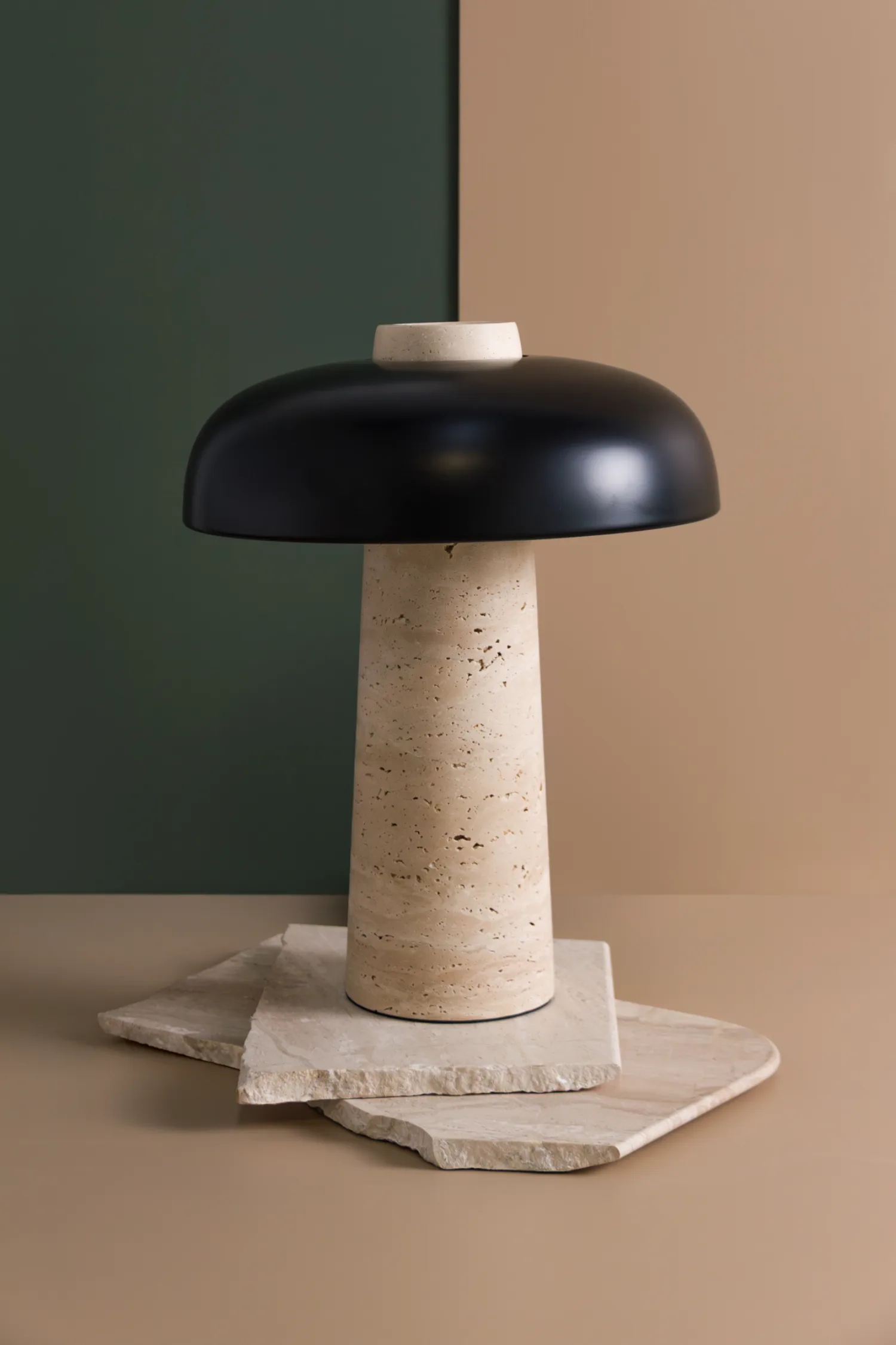 With its sculptural silhouette and natural materials, PORCINI is a study in refined simplicity. A smooth travertine base grounds the design, while the black dome shade casts a warm, focused light. Equal parts statement piece and everyday essential, it’s perfect for bringing soft illumination and quiet elegance to any space.
