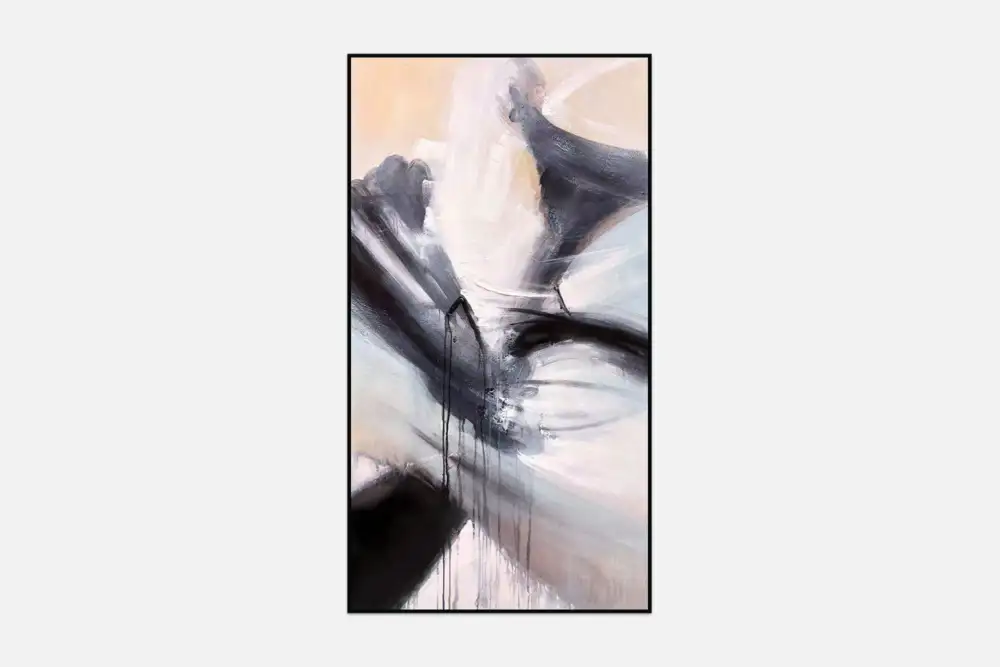With a captivating interplay of black, white, grey, and beige, this piece evokes a sense of both calm and chaos. This artwork is a bold statement for any modern space. Let the energy of the painting ignite your imagination.