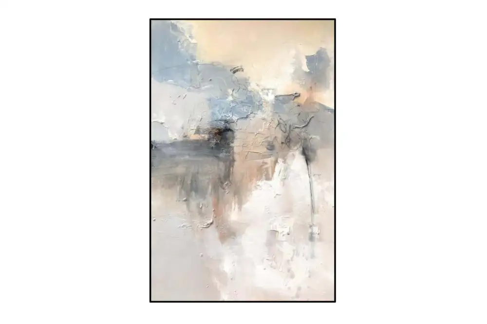 The Peche2 painting is a soft abstract with tones of peach, pink and blue. Pair alone or with the Peche1 painting to create a larger scale impact piece.