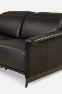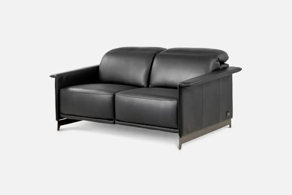 The ELETTRA sofa is a stunning blend of style and function. Its sleek design, featuring a slender leather-covered arm and bronzed legs, creates a visually striking piece. The adjustable headrest and optional recliner mechanism provide unparalleled comfort.
