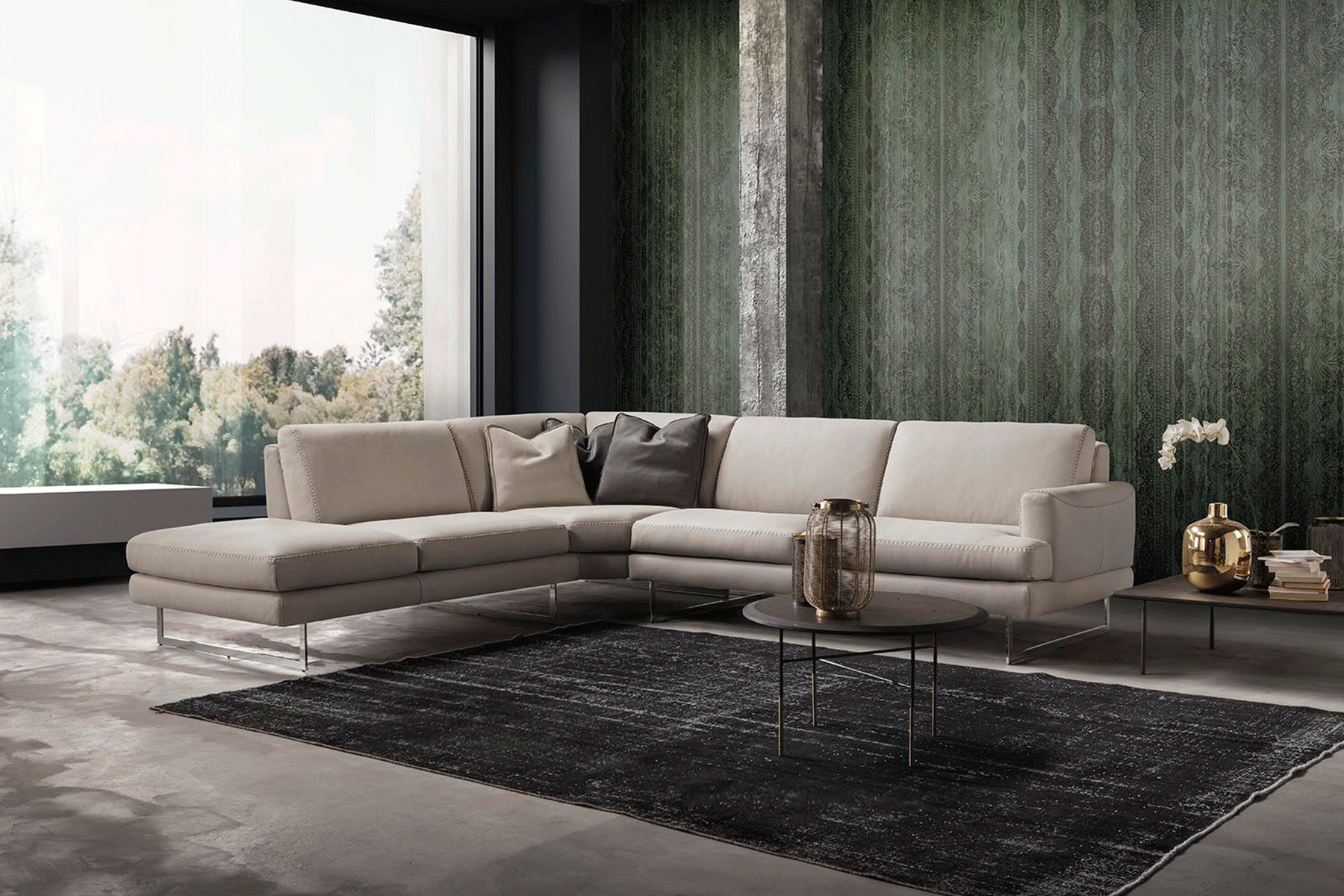 Clean-lined and effortlessly modern, NARCISSO balances a tailored silhouette with generous, inviting proportions. Crafted in Italy, the extended chaise encourages relaxed lounging, while supportive cushions create a comfortable, everyday sit. Elevated on slim legs, it brings a sense of lightness with a grounded, contemporary presence.