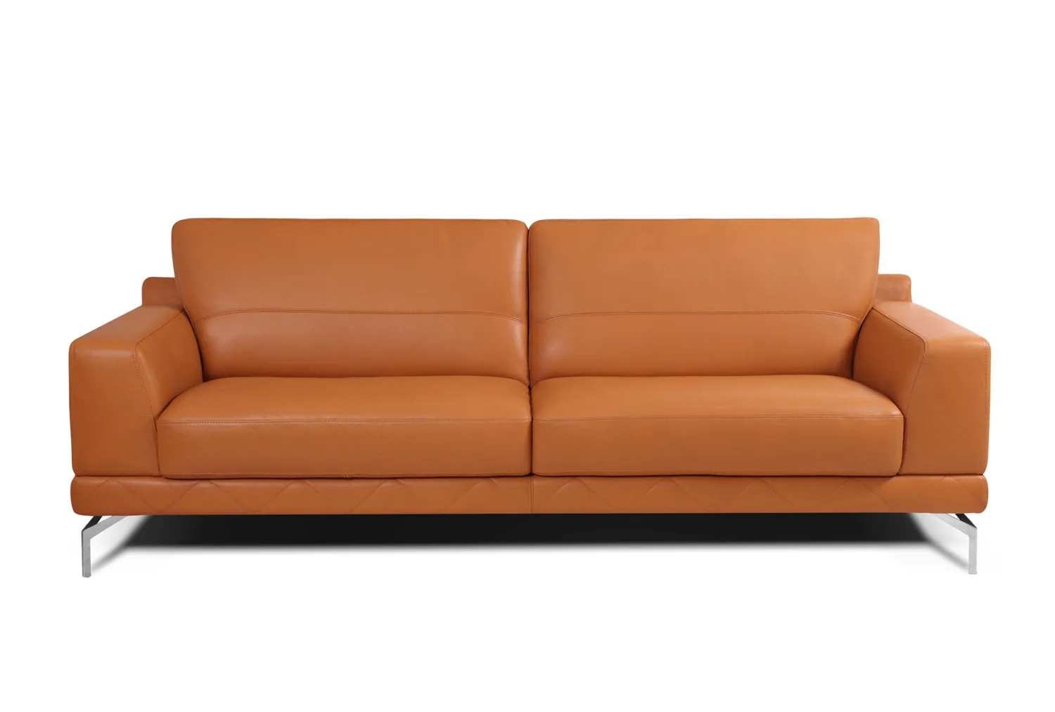 This modern sofa features tailored arms and a slim base for a sleek, space-saving design.