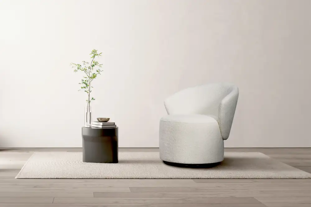 Inspired by the natural beauty of shells, SHELBY offers a stylish and versatile seating option. Its curved design and swivel mechanism make it a perfect addition to any room. Whether used as a standalone piece or in pairs, this chair brings a touch of organic elegance to your home.