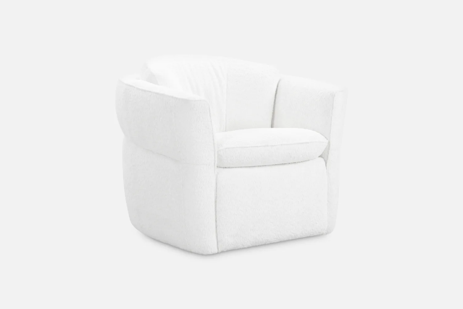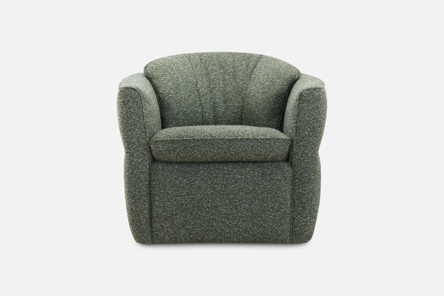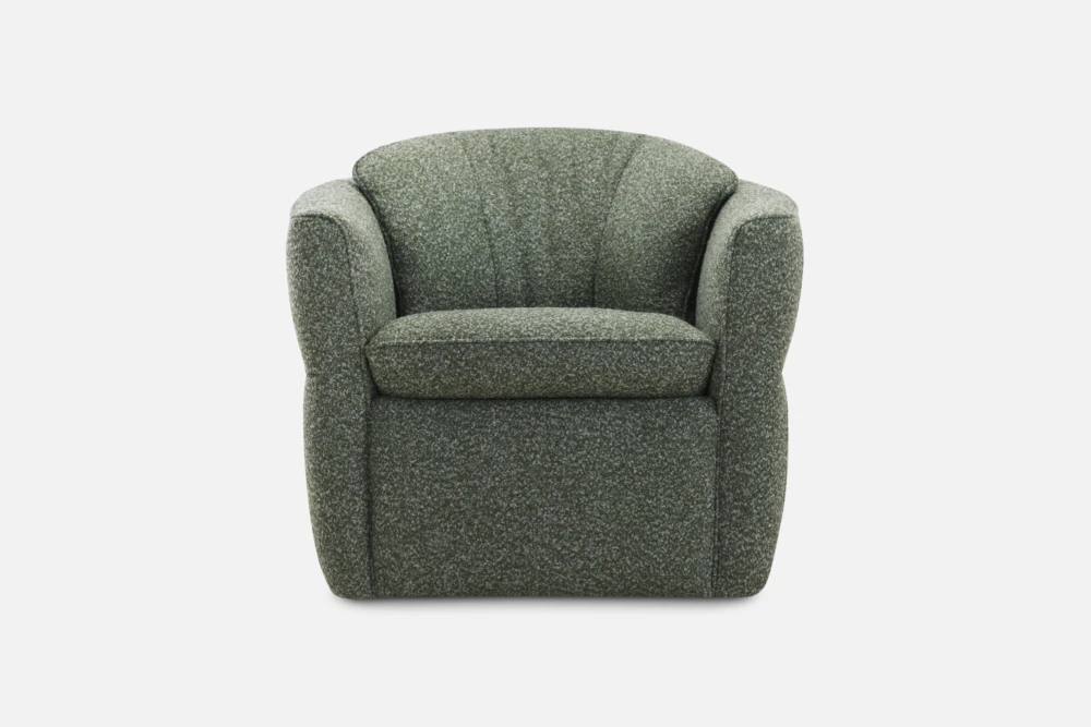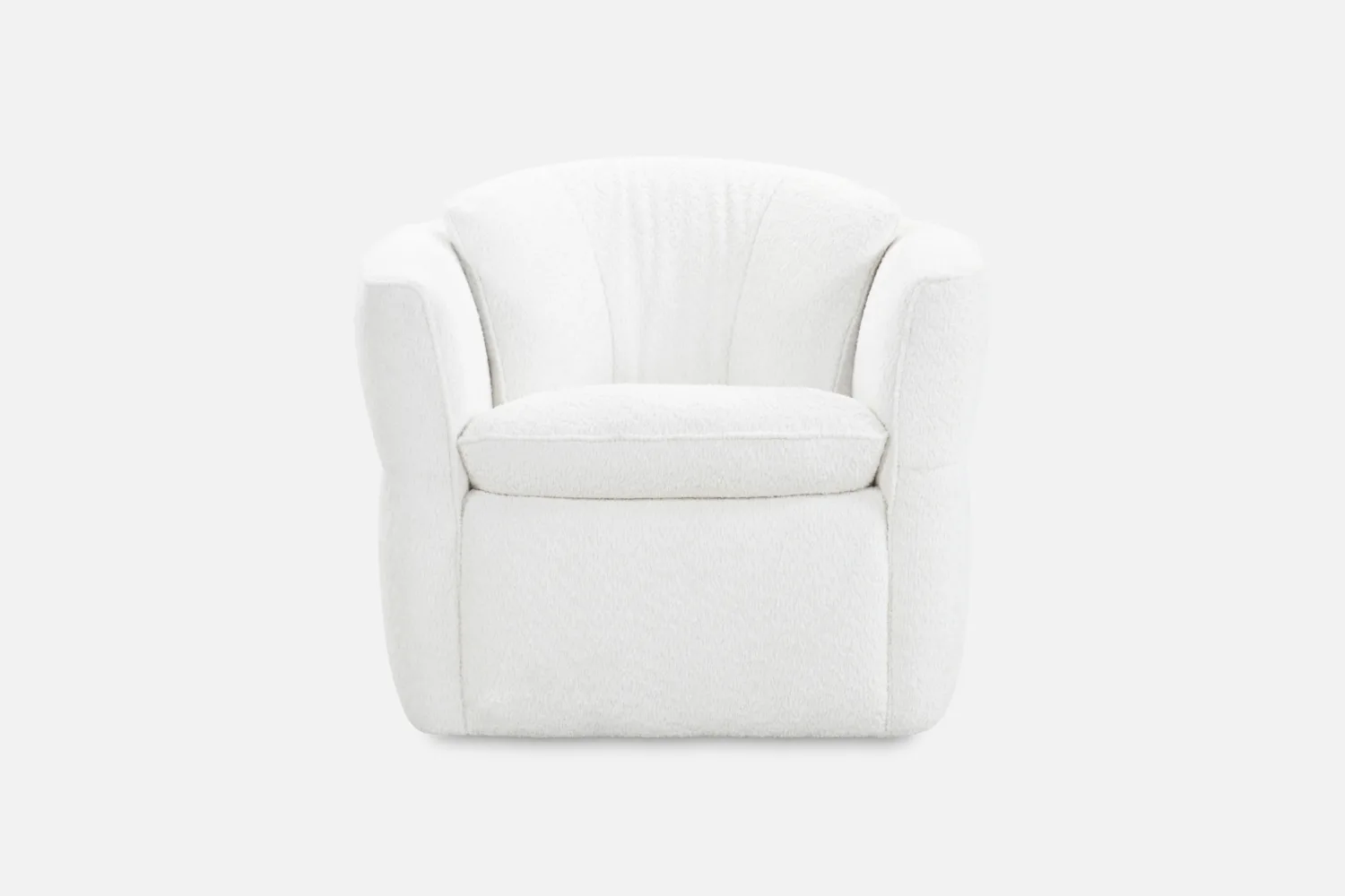 AUDRI combines a gently curved silhouette with plush cushioning, creating a chair that’s as inviting as it is stylish. The swivel base adds flexibility, while the tailored design brings a contemporary, sculptural touch to any setting.